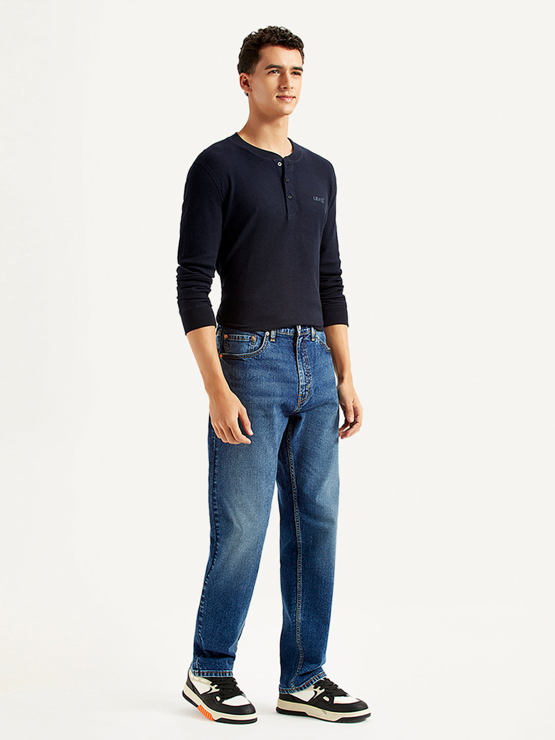 Want a fashion upgrade to your look? Start with these comfy blue Levi's jeans. Made from premium cotton blend fabric, this regular fit denim delivers style with immense comfort. Long lasting perfect full length pair.