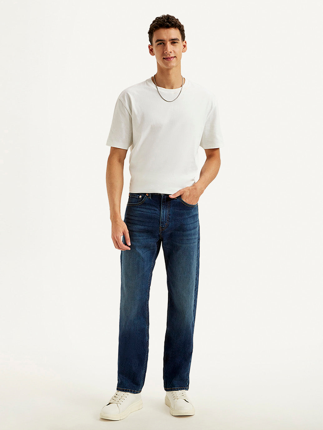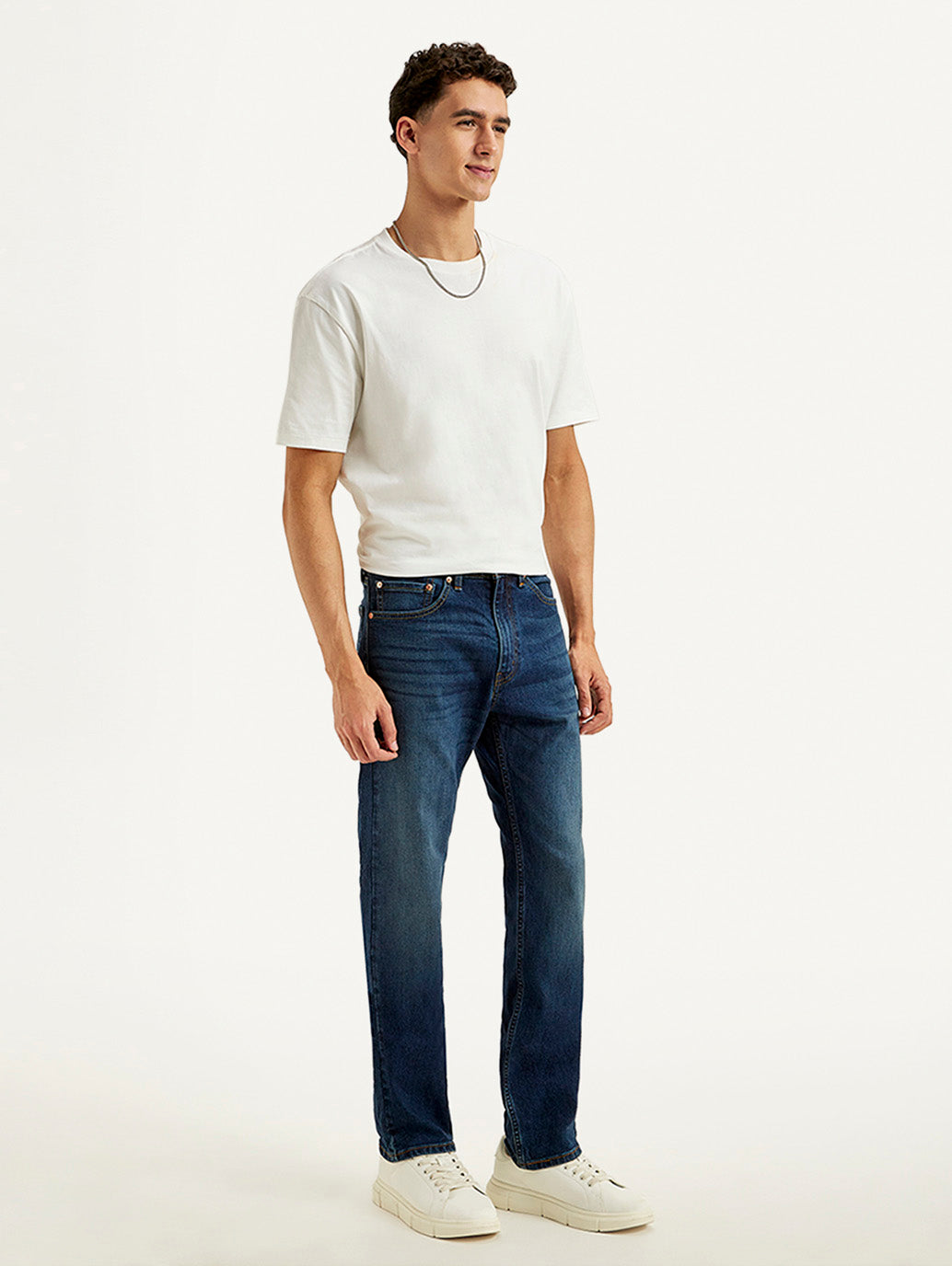 Want a fashion upgrade to your look? Start with these comfy navy Levi's jeans. Made from premium cotton-poly blend fabric, this regular-fit denim delivers style with immense comfort. Long lasting perfect full length pair.