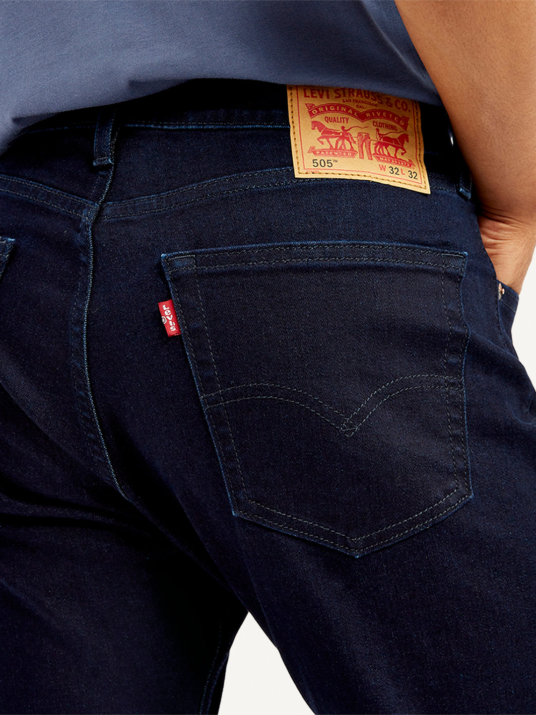 Want a fashion upgrade to your look? Start with these comfy navy Levi's jeans. Made from premium cotton fabric, this regular fit denim delivers style with immense comfort. Long lasting perfect full length pair.