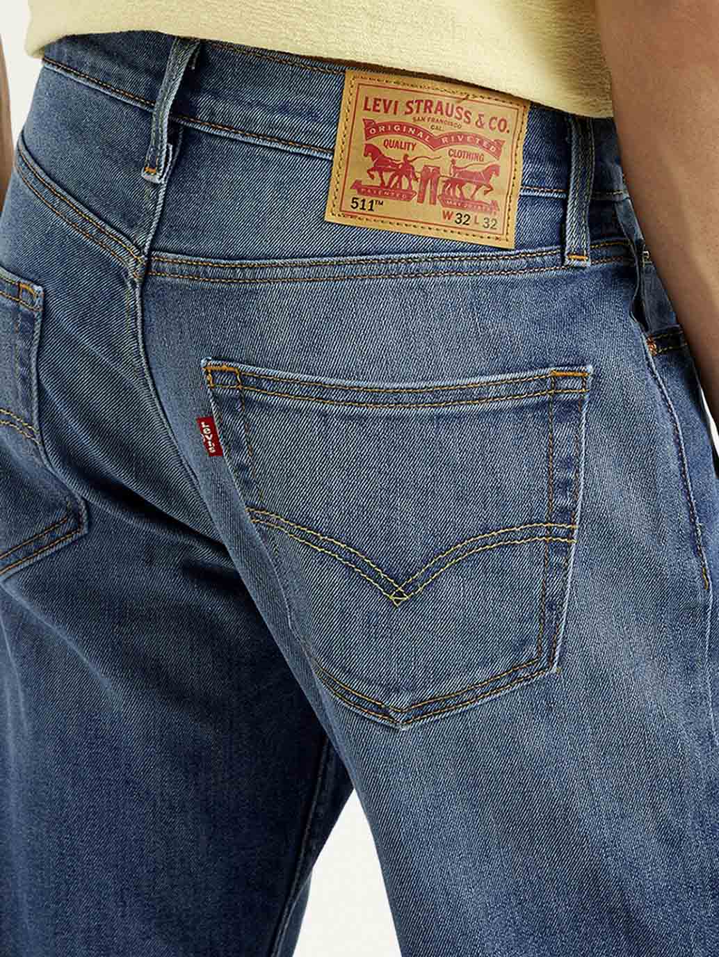 A modern slim with room to move, the 511 slim-fit Stretch Jeans are a classic, you can wear with anything. Complete your casual wardrobe with a splash of style with these 511 slim-fit jeans from Levi's. Cut in a cotton-poly blend fabric with the right amount of stretch, these blue jeans in solid pattern can be paired with most things to create a super cool outfit.