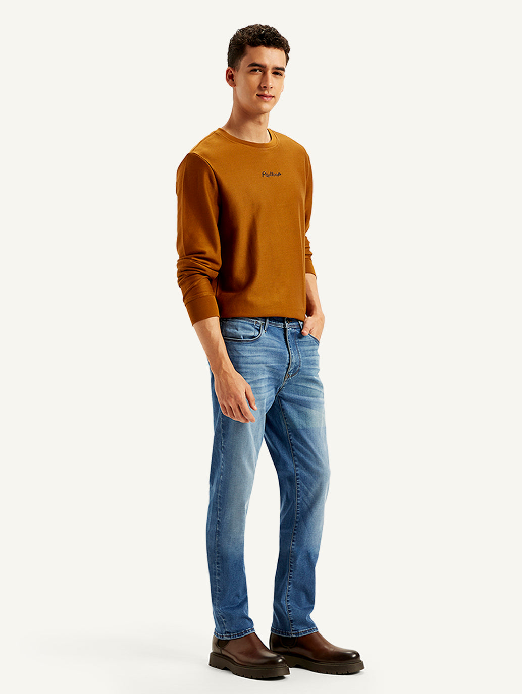 1. These jeans sit mid waist with a slim fit from hip to ankle.