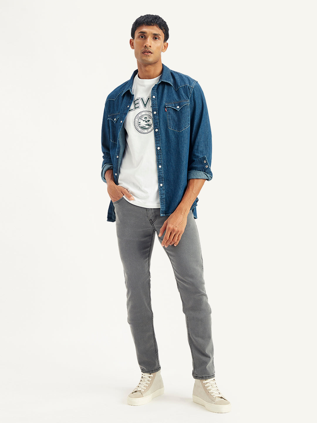 • Men's 511 Light Grey Slim Fit Mid Rise Jeans