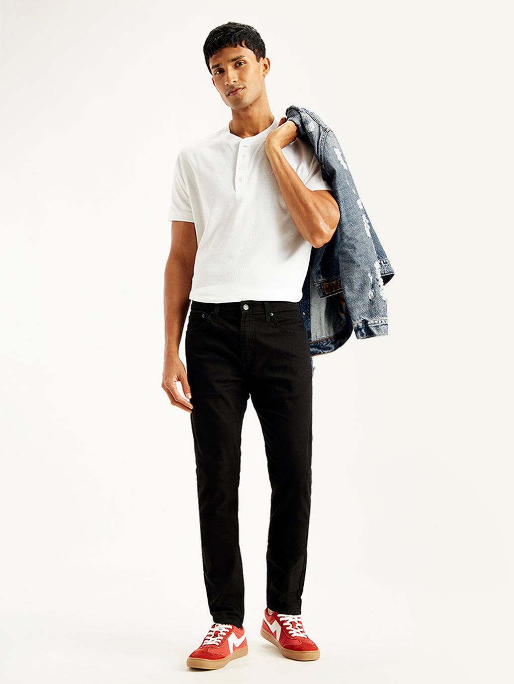 Everything you like about 512 Slim, but updated with a narrow fit through the thigh and tapered leg for the fashion-forward guy. It's perfect for the modern look right now. This pair has just the right amount of stretch for all-day comfort and comes in a black hue with the classic 5 pocket and a cotton material. Style it with our classic shirts and a pair of sneakers to complete your casual look.