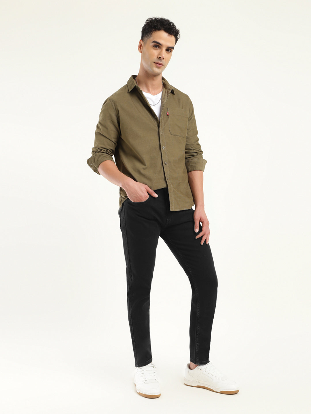 Everything you like about 512 slim, but updated with a narrow fit through the thigh and tapered leg for the fashion-forward guy. It's perfect for the modern look right now. This pair has just the right amount of stretch for all-day comfort and comes in black with the classic 5 pocket and a cotton material. Style it with our classic shirts and a pair of sneakers to complete your casual look.
