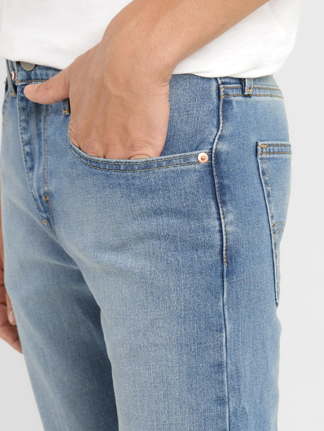 Everything you like about 512 Slim, but updated with a narrow fit through the thigh and tapered leg for the fashion-forward guy. It's perfect for the modern look right now. This pair has just the right amount of stretch for all-day comfort and comes in a dark blue hue with the classic 5 pocket and a cotton material. Style it with our classic shirts and a pair of sneakers to complete your casual look.