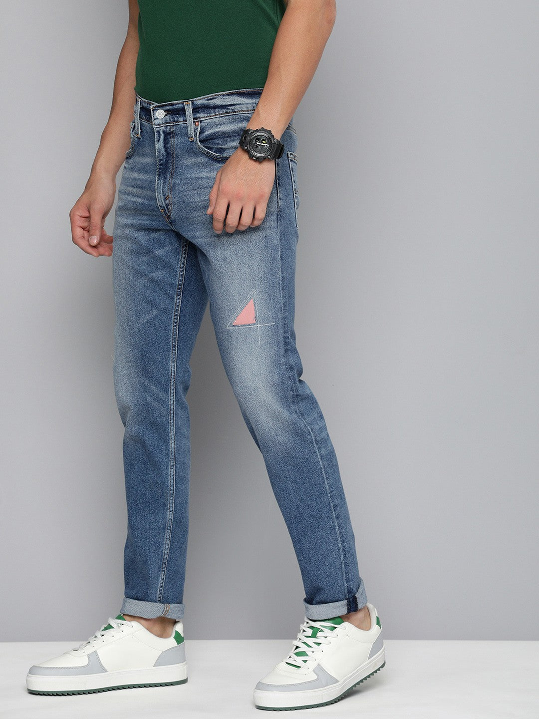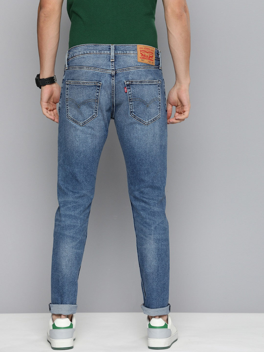 Everything you like about 512 slim, but updated with a narrow fit through the thigh and tapered leg for the fashion-forward guy. It's perfect for the modern look right now. This pair has just the right amount of stretch for all-day comfort and comes in a blue hue with the classic 5 pocket, reverse applique and a cotton material. Style it with our classic shirts and a pair of sneakers to complete your casual look.