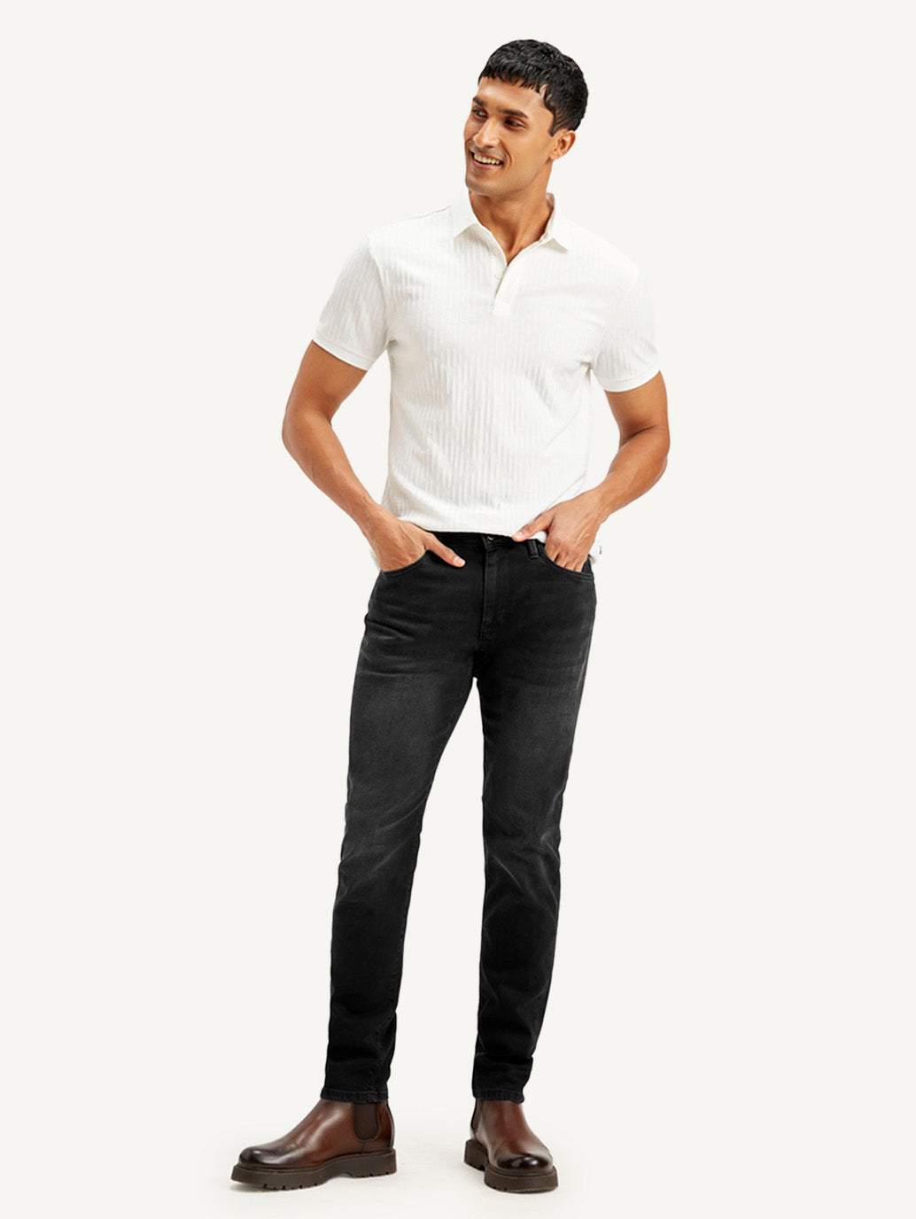 Everything you like about 512 Slim, but updated with a narrow fit through the thigh and tapered leg for the fashion-forward guy. It's perfect for the modern look right now. This pair has just the right amount of stretch for all-day comfort and comes in a black hue with the classic 5 pocket and a cotton material. Style it with our classic shirts and a pair of sneakers to complete your casual look.