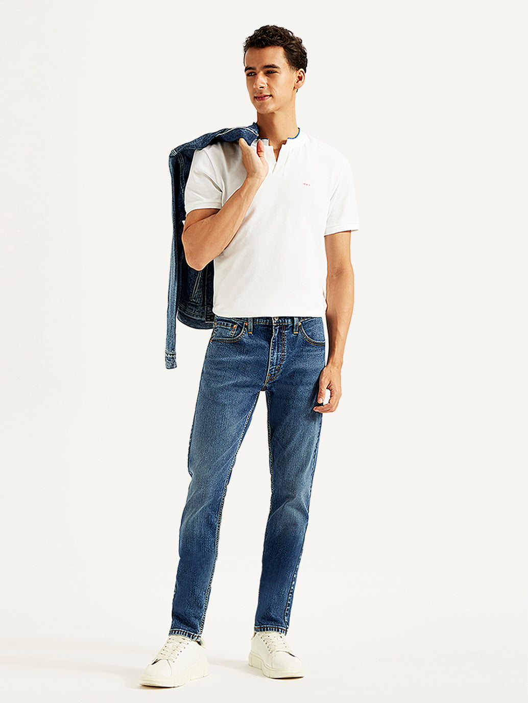 Everything you like about 512 Slim, but updated with a narrow fit through the thigh and tapered leg for the fashion-forward guy. It's perfect for the modern look right now. This pair has just the right amount of stretch for all-day comfort and comes in a blue hue with the classic 5 pocket and cotton material. Style it with our classic shirts and a pair of sneakers to complete your casual look.