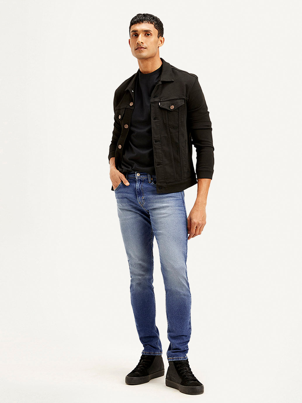 Everything you like about 512 Slim, but updated with a narrow fit through the thigh and tapered leg for the fashion-forward guy. It's perfect for the modern look right now. This pair has just the right amount of stretch for all-day comfort and comes in a blue hue with the classic 5 pocket and a cotton material. Style it with our classic shirts and a pair of sneakers to complete your casual look.