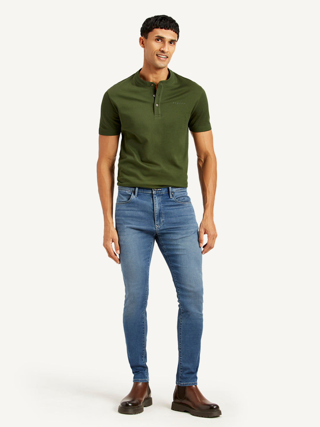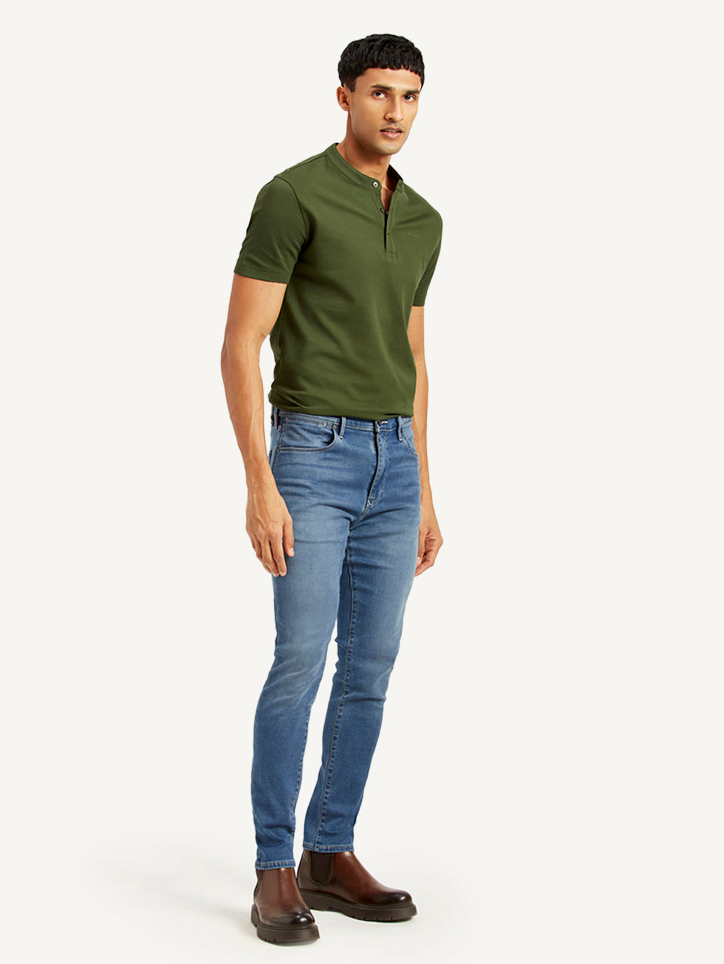 Everything you like about 512 Slim, but updated with a narrow fit through the thigh and tapered leg for the fashion-forward guy. It's perfect for the modern look right now. This pair has just the right amount of stretch for all-day comfort and comes in a blue hue with the classic 5 pocket and cotton material. Style it with our classic shirts and a pair of sneakers to complete your casual look.
