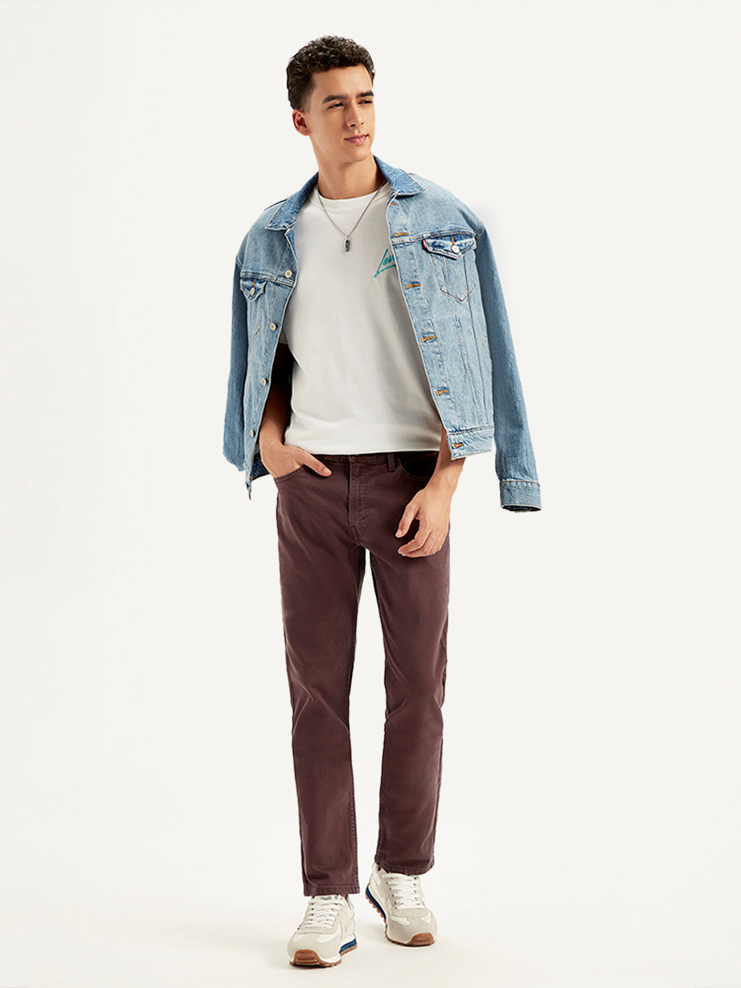 Everything you like about 512 Slim, but updated with a narrow fit through the thigh and tapered leg for the fashion-forward guy. It's perfect for the modern look right now. This pair has just the right amount of stretch for all-day comfort and comes in a brown hue with the classic 5 pocket and a cotton material. Style it with our classic shirts and a pair of sneakers to complete your casual look.