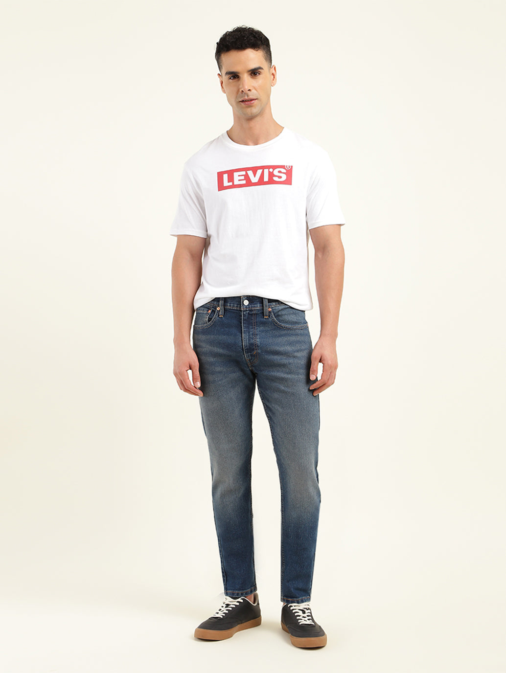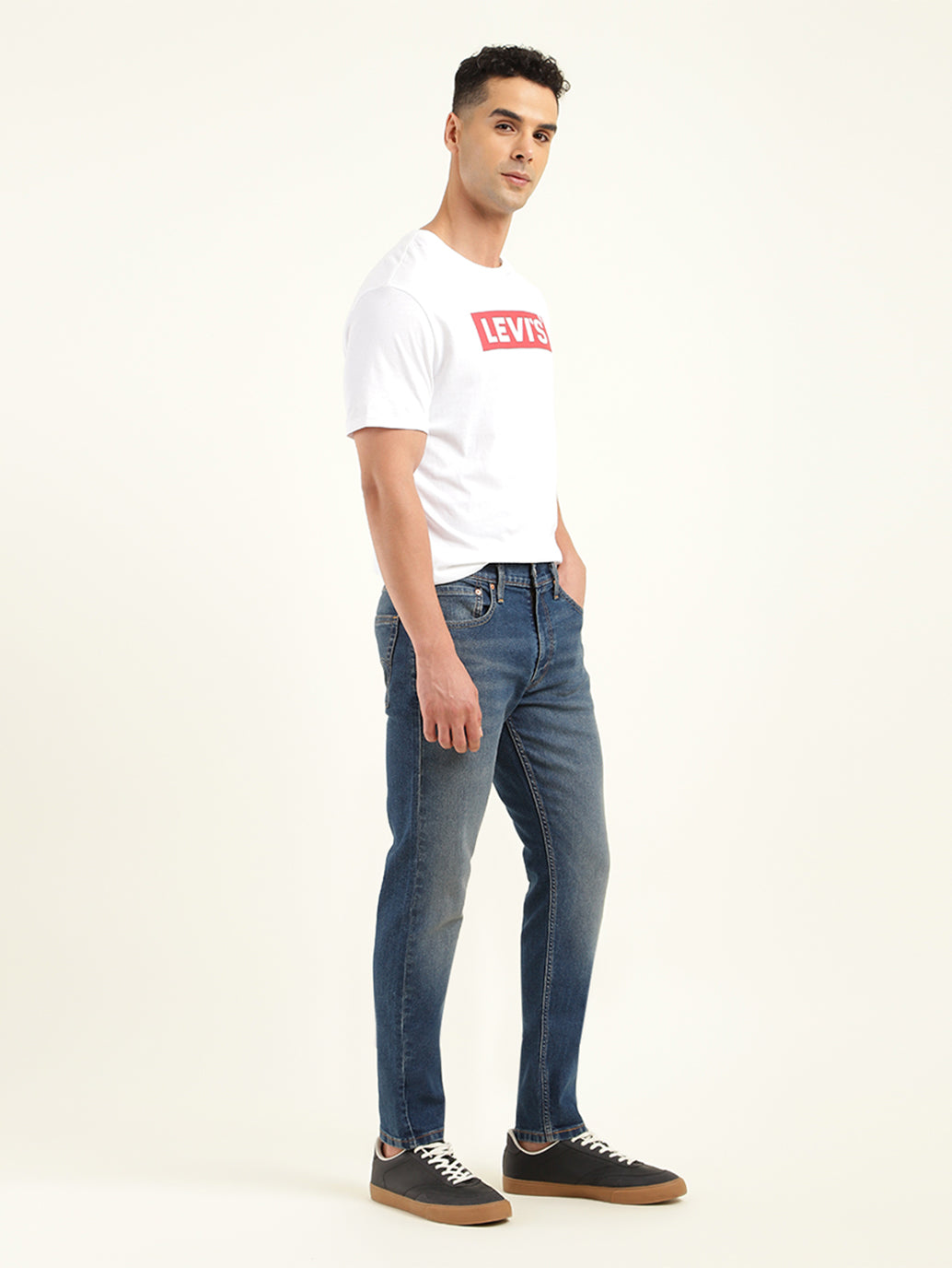 Everything you like about 512 Slim, but updated with a narrow fit through the thigh and tapered leg for the fashion-forward guy. It's perfect for the modern look right now. This pair has just the right amount of stretch for all-day comfort and comes in a blue hue with the classic 5 pocket and a cotton material. Style it with our classic shirts and a pair of sneakers to complete your casual look.