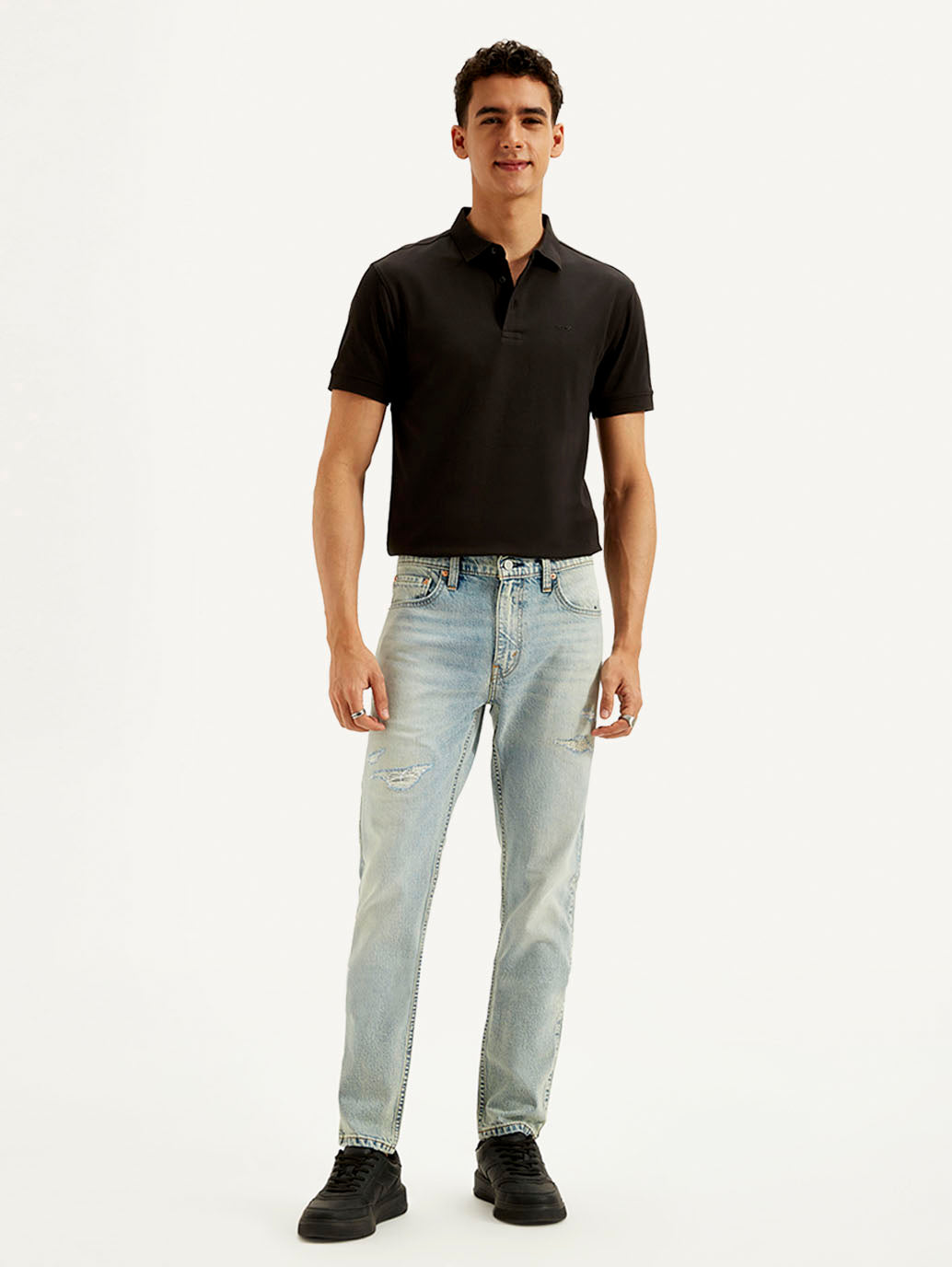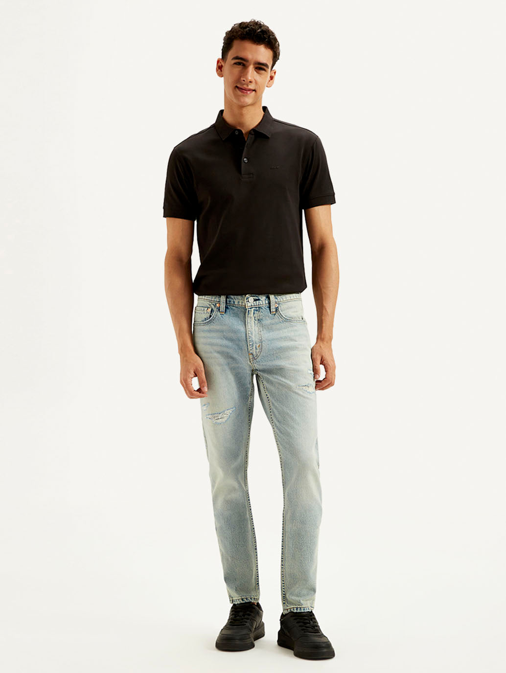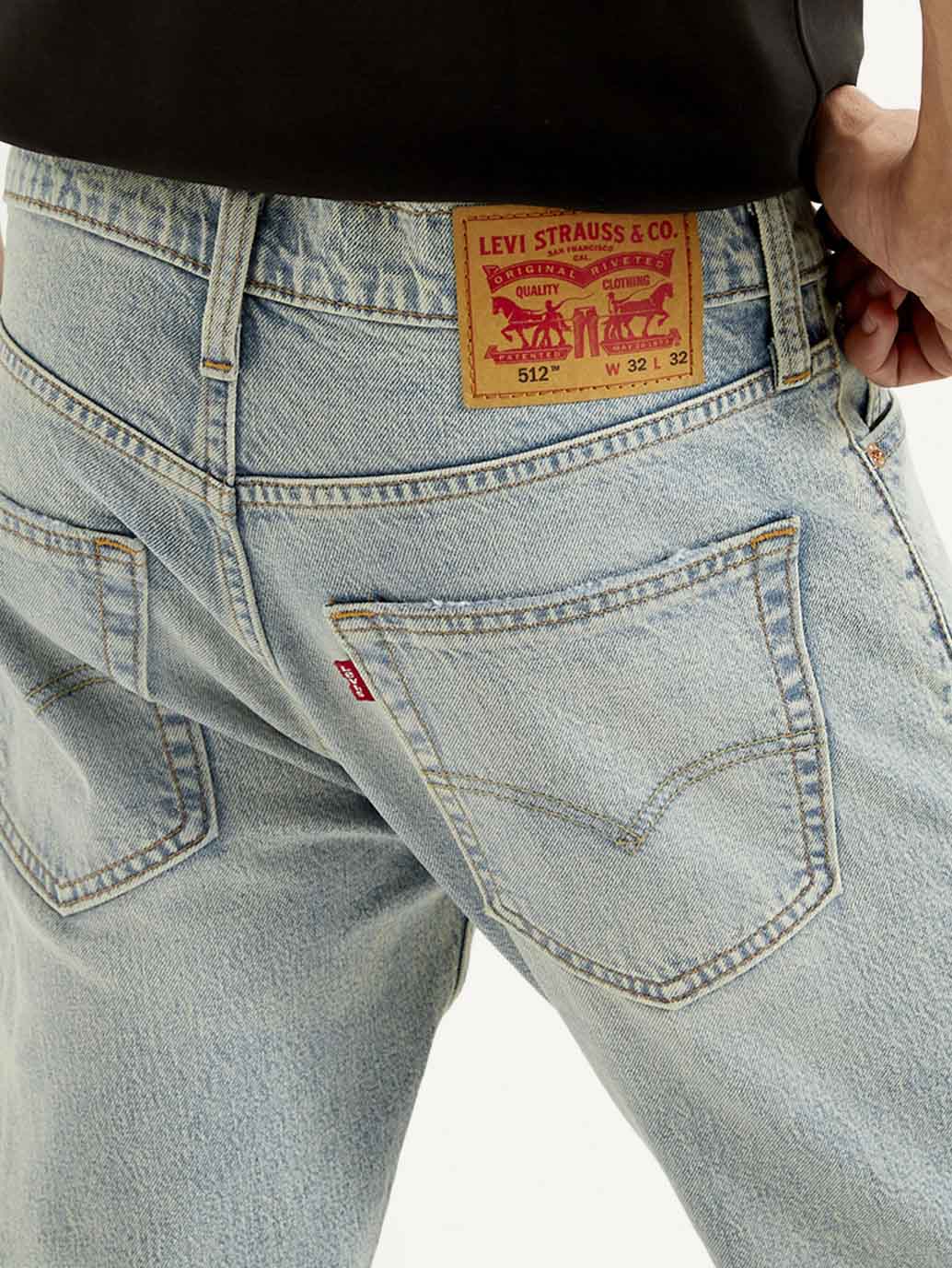 Everything you like about 512 Slim, but updated with a narrow-fit through the thigh and tapered leg for the fashion-forward guy. It's perfect for the modern look right now. This pair has just the right amount of stretch for all-day comfort and comes in a blue hue with the classic 5 pocket and a cotton material. Style it with our classic shirts and a pair of sneakers to complete your casual look.
