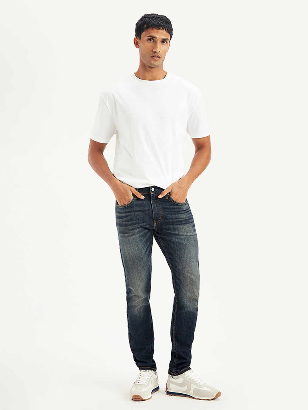 Everything you like about 512 Slim, but updated with a narrow fit through the thigh and tapered leg for the fashion-forward guy. It's perfect for the modern look right now. This pair has just the right amount of stretch for all-day comfort and comes in a navy hue with the classic 5 pocket and cotton material. Style it with our classic shirts and a pair of sneakers to complete your casual look.