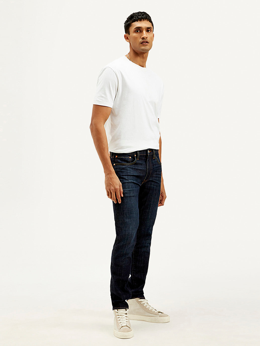 Everything you like about 512 Slim, but updated with a narrow-fit through the thigh and tapered leg for the fashion-forward guy. It's perfect for the modern look right now. This pair has just the right amount of stretch for all-day comfort and comes in a navy hue with the classic 5 pocket and a cotton-poly blend material. Style it with our classic shirts and a pair of sneakers to complete your casual look.