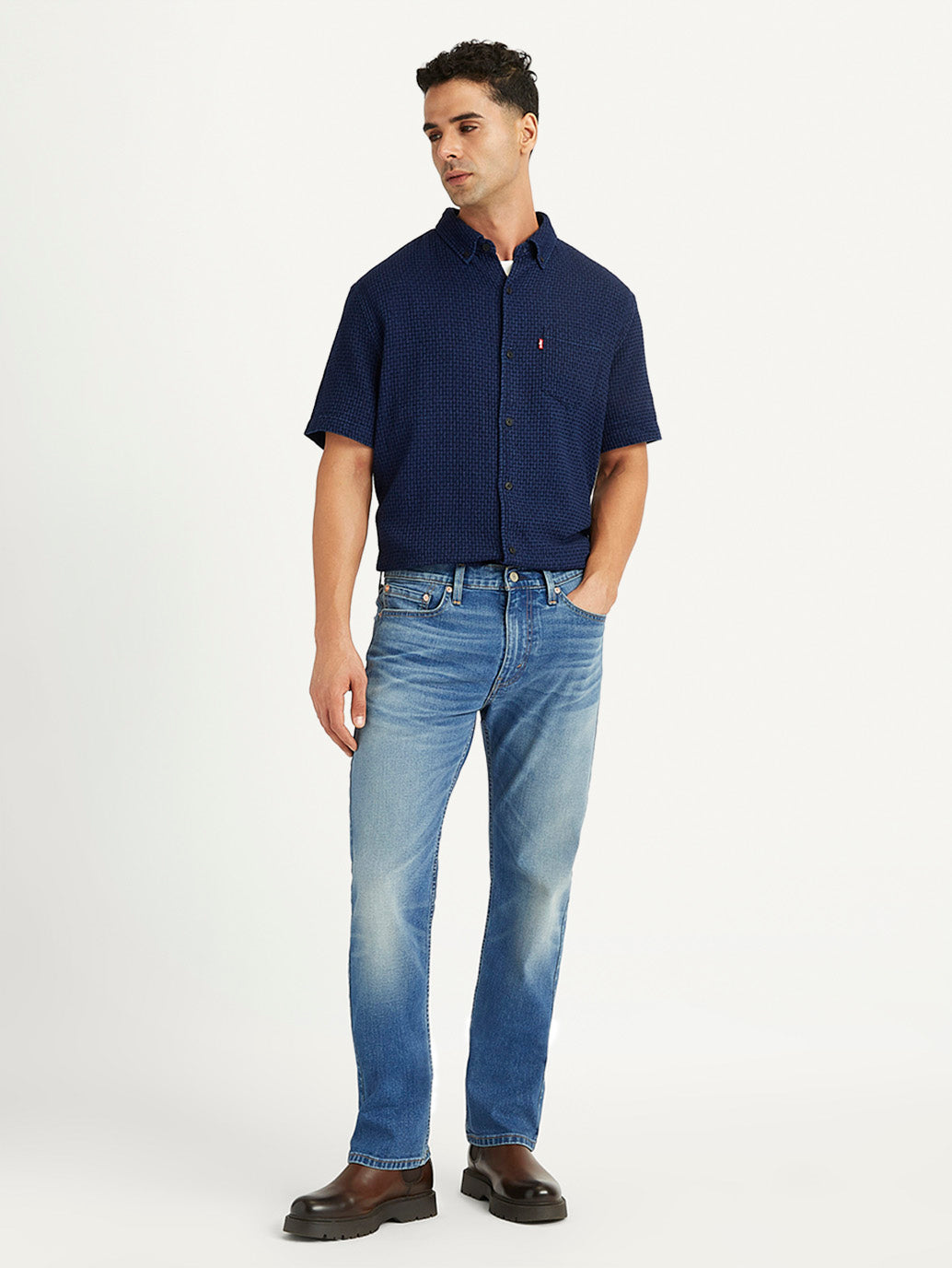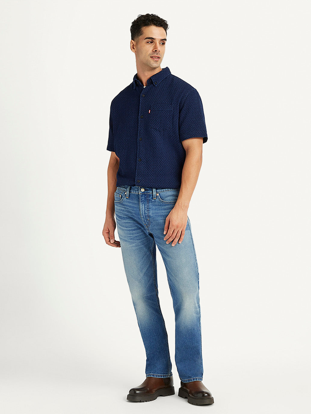 Iconic Style has met comfort. A fit that's not too baggy/relaxed and not too slim. The Levis 513 Straight fit is versatile and gives a streamlined silhouette. Wear them with a t-shirt or buttoned shirt, either would work. These blue jeans with a medium shade are made of cotton and will stay durable providing exceptional ease of movement and wearing comfort.