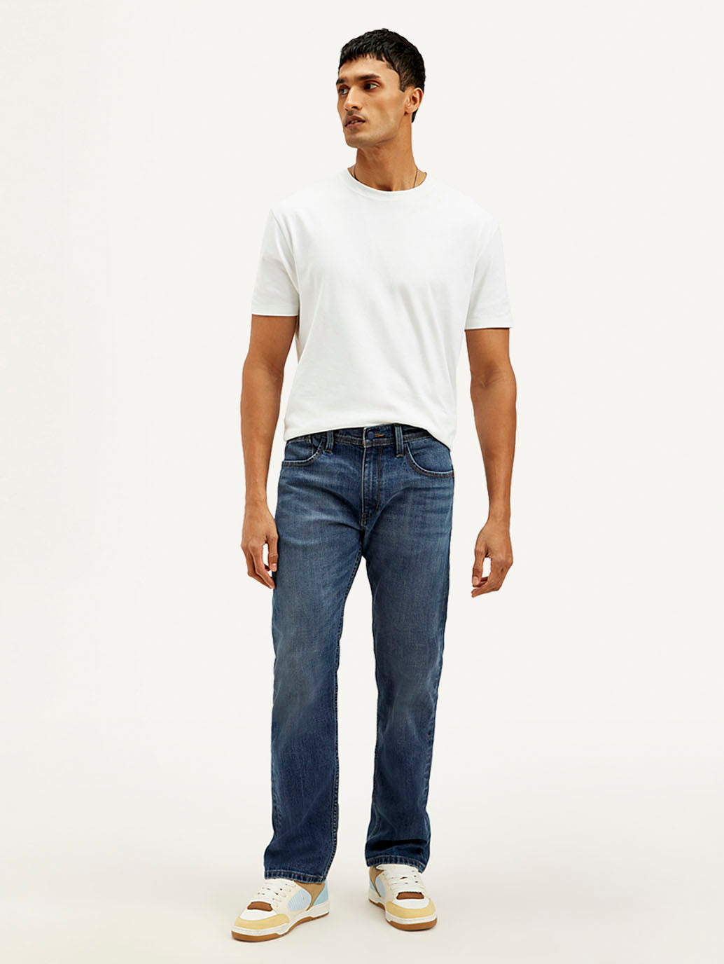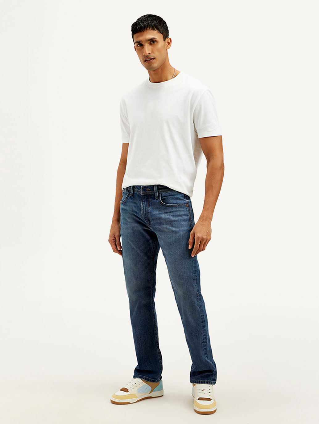 Iconic Style has met comfort. A fit that's not too baggy/relaxed and not too slim. The Levis 513 straight-fit is versatile and gives a streamlined silhouette. Wear them with a t-shirt or buttoned shirt, either would work. These blue jeans with a dark shade are made of cotton-poly blend and will stay durable providing exceptional ease of movement and wearing comfort.