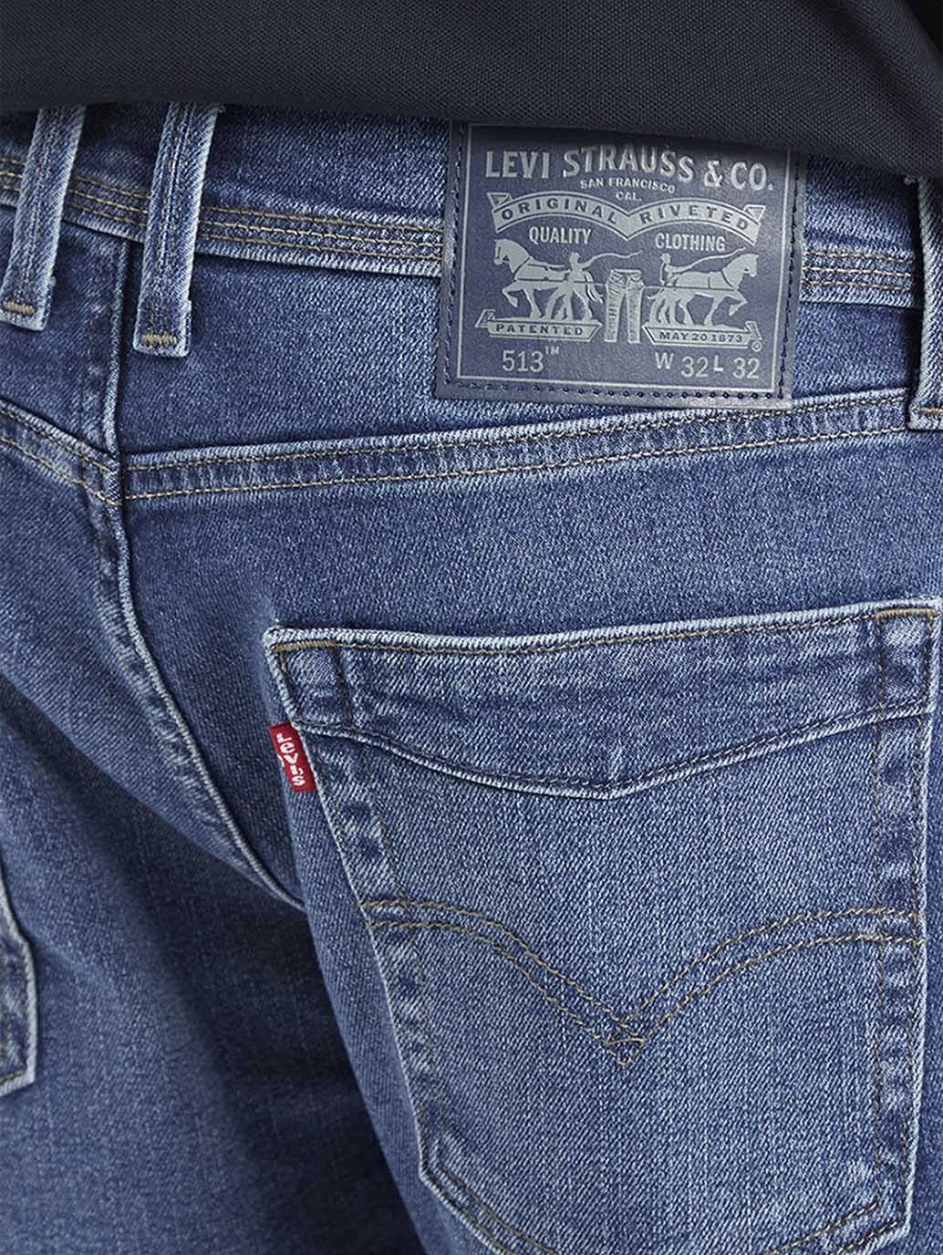 Iconic Style has met comfort. A fit that's not too baggy/relaxed and not too slim. The Levis 513 Straight fit is versatile and gives a streamlined silhouette. Wear them with a t-shirt or buttoned shirt, either would work. These blue jeans with a medium shade are made of cotton and will stay durable providing exceptional ease of movement and wearing comfort.