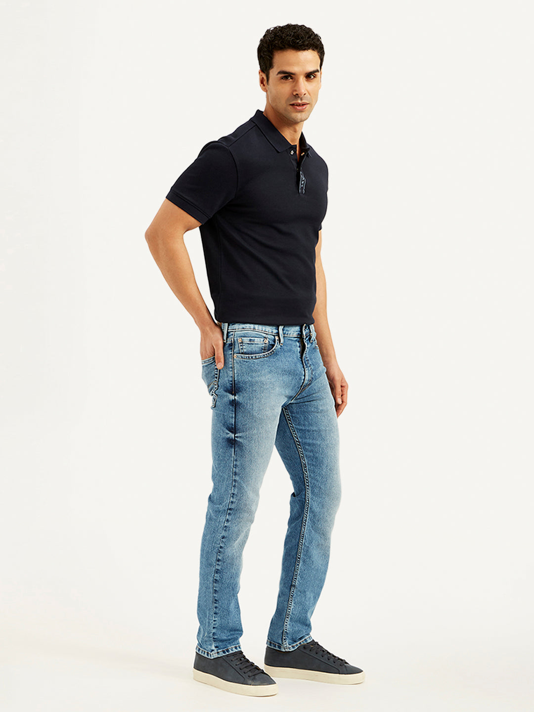 Iconic Style has met comfort. A fit that's not too baggy/relaxed and not too slim. The Levis 513 Straight fit is versatile and gives a streamlined silhouette. Wear them with a t-shirt or buttoned shirt, either would work. These blue jeans with a medium shade are made of cotton and will stay durable providing exceptional ease of movement and wearing comfort.