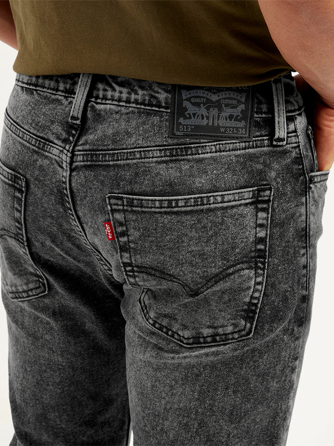 Iconic Style has met comfort. A fit that's not too baggy/relaxed and not too slim. The Levis 513 Straight fit is versatile and gives a streamlined silhouette. Wear them with a t-shirt or buttoned shirt, either would work. These grey jeans with a dark shade are made of cotton and will stay durable providing exceptional ease of movement and wearing comfort.