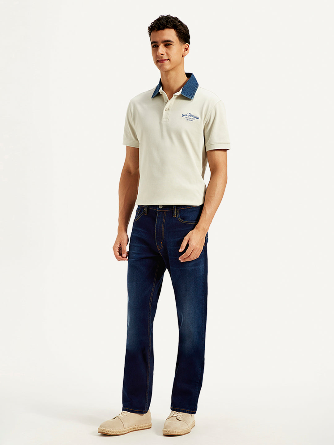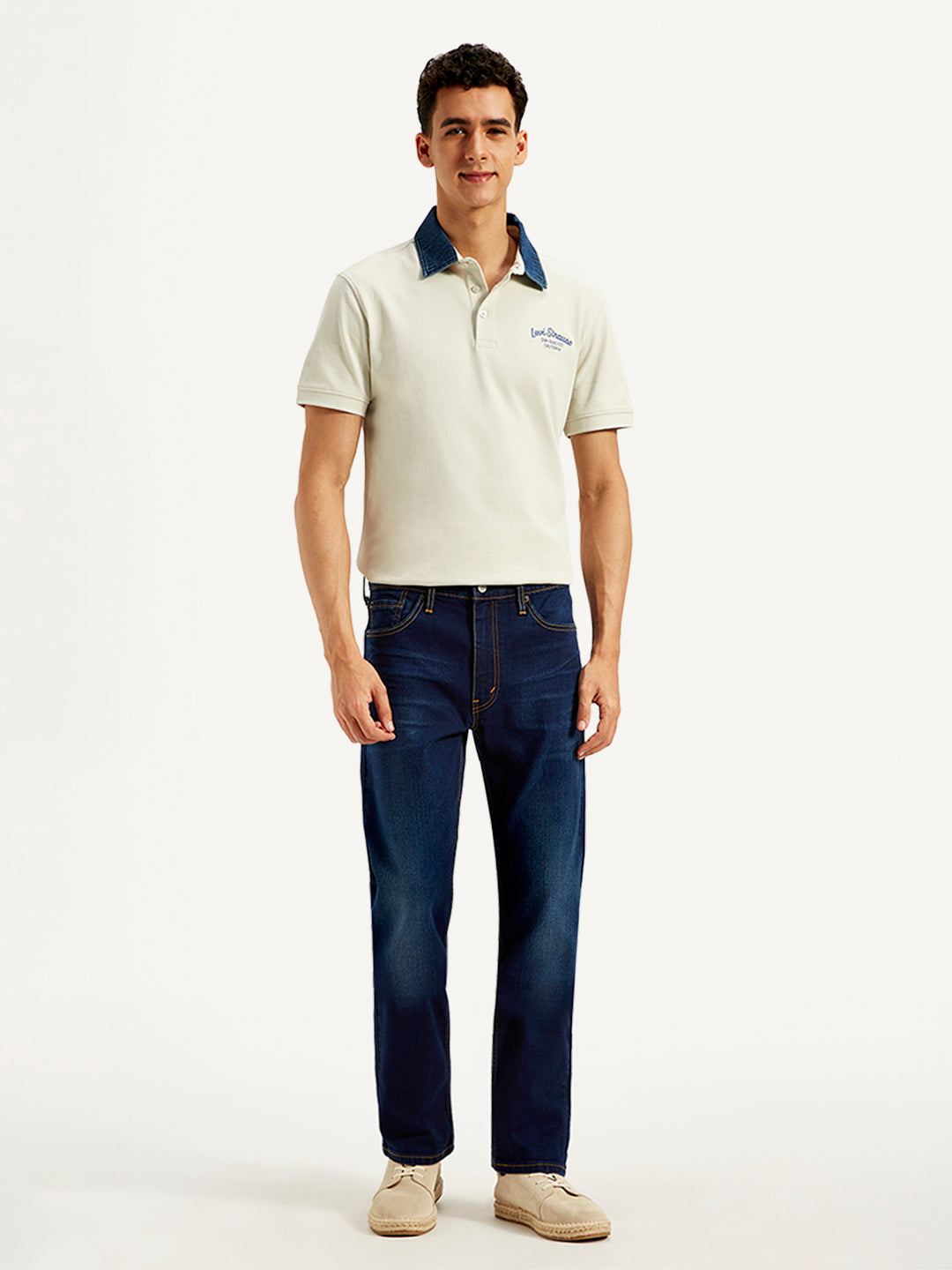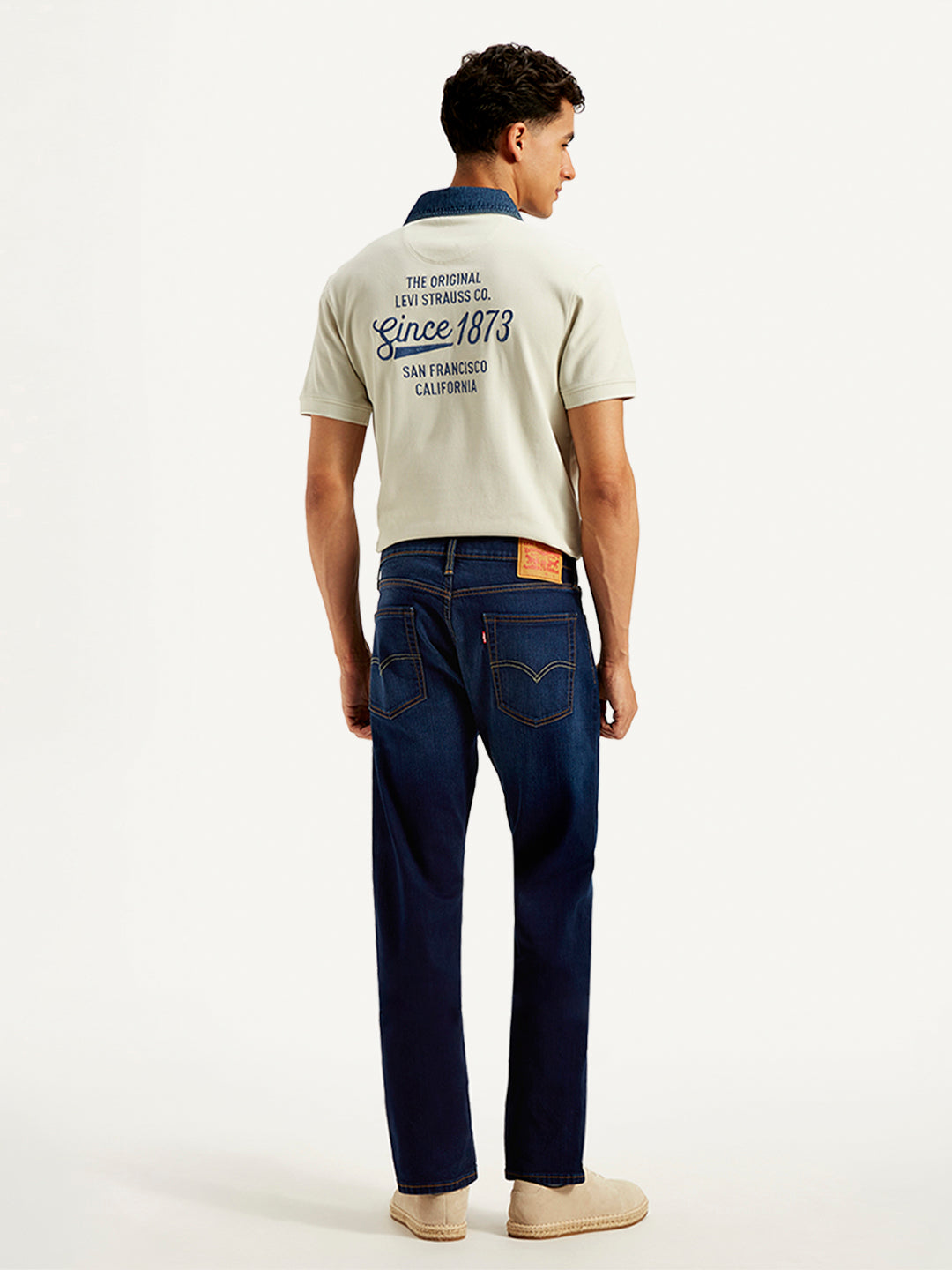 Iconic Style has met comfort. A fit that's not too baggy/relaxed and not too slim. The Levis 513 Straight fit is versatile and gives a streamlined silhouette. Wear them with a t-shirt or buttoned shirt, either would work. These navy jeans with a dark shade are made of cotton and will stay durable providing exceptional ease of movement and wearing comfort.