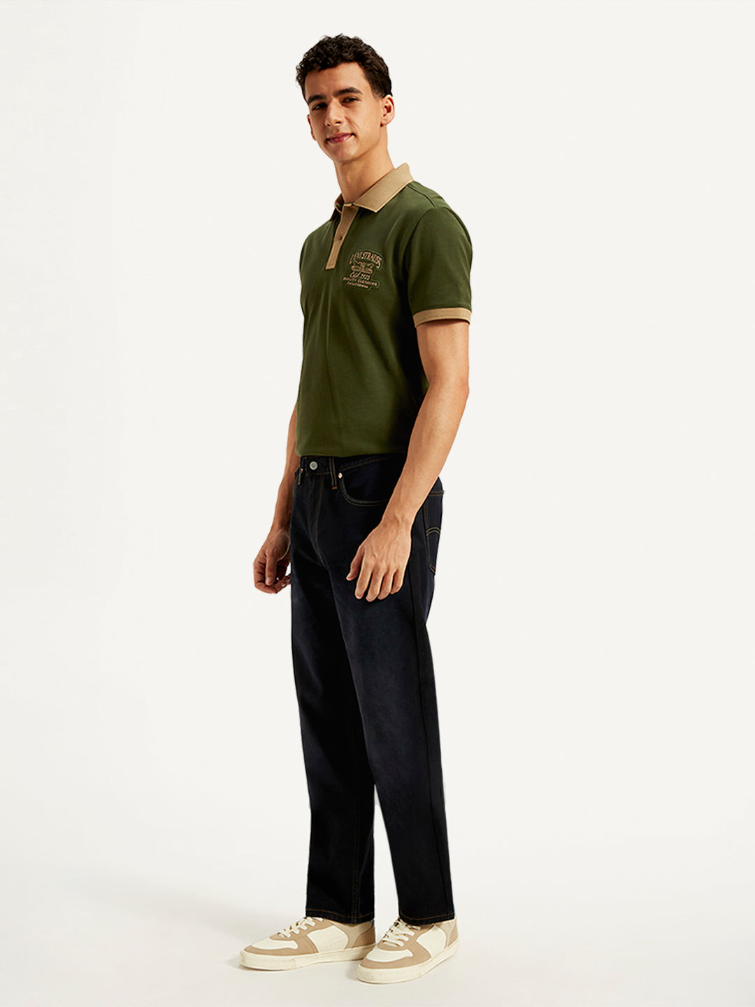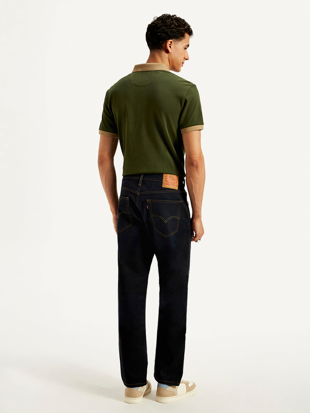 Want a fashion upgrade to your look? Start with these comfy navy Levi's jeans. Made from premium cotton fabric, this tapered denim delivers style with immense comfort. Long lasting perfect full length pair.