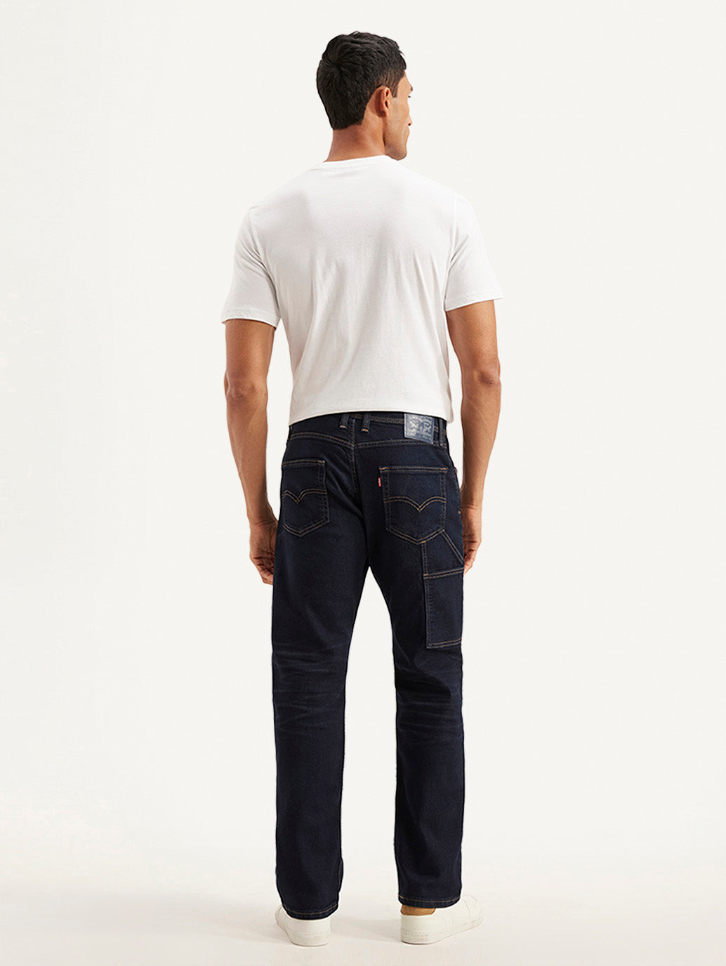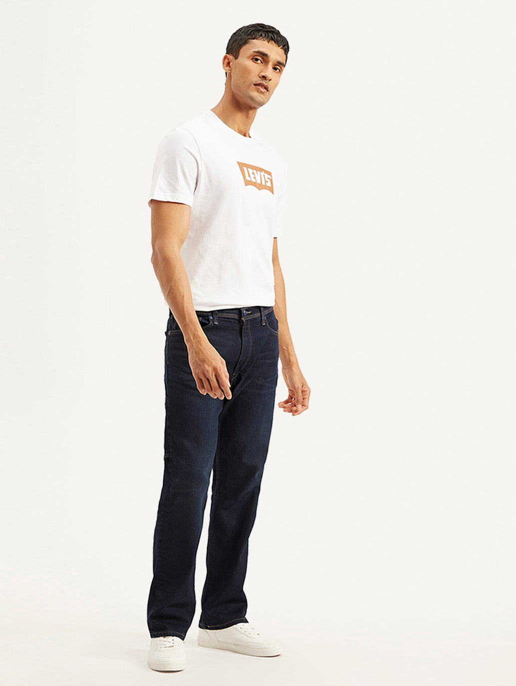 • Men's 555 Navy Blue Relaxed Straight Fit Mid Rise Utility Jeans