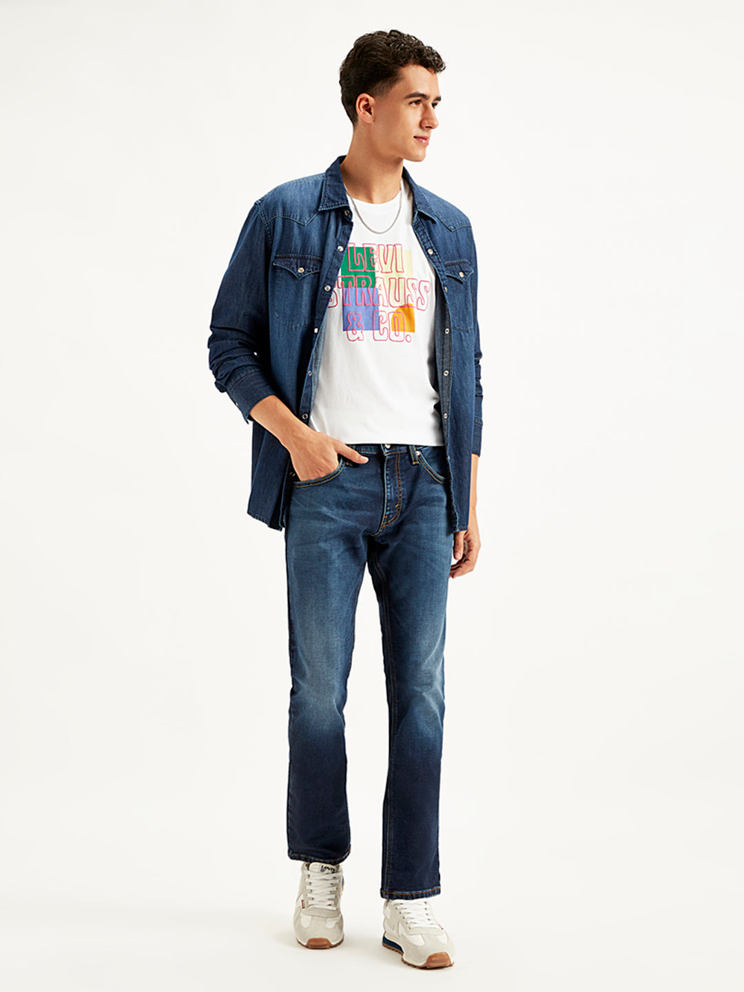 Want a fashion upgrade to your look? Start with these comfy blue Levi's jeans. Made from premium cotton fabric, this skinny denim delivers style with immense comfort. Long lasting perfect full length pair.