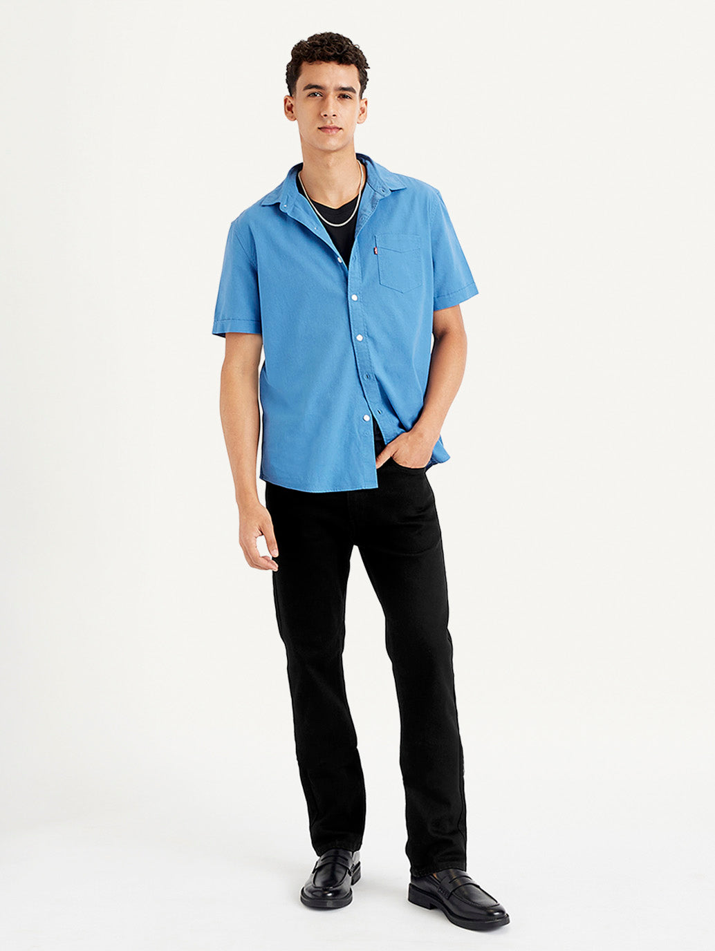 Men's 505 Blue Straight Fit Mid Rise Jeans