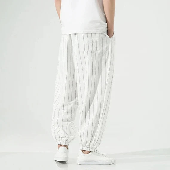 Keep it casual in these pinstripe joggers, crafted with a breathable cotton blend featuring a relaxed fit and elastic cuffs. The sharp pinstripe design adds a sleek touch to your everyday look.
