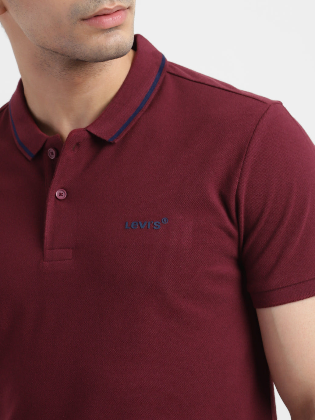 Timeless and classy, the Levi's Men's Polo Collar Polo T-Shirt is sure to give your closet an instant makeover. With a solid pattern, this maroon polo T-shirt is sure to make heads turn. Crafted from cotton blend material, this short sleeves polo T-shirt lends you a snug regular fit.
