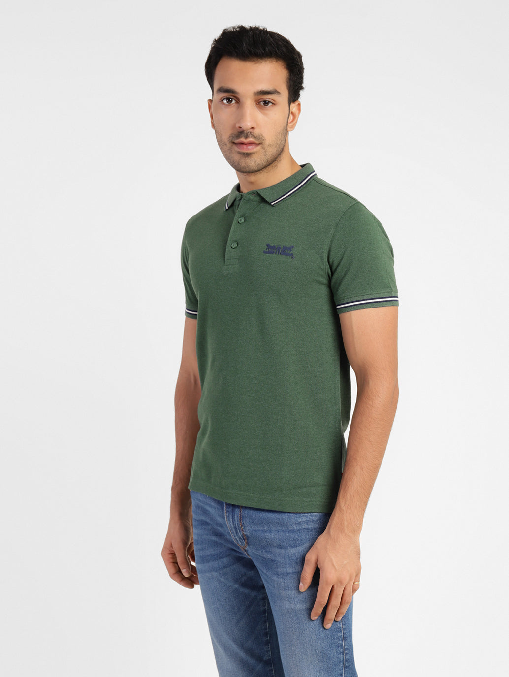 Upgrade your casual closet by opting for this trendy and versatile Levi's Men's Polo Collar Polo T-Shirt. This green polo tee comes with a solid pattern. Tailored from soft cotton blend material, this short sleeves polo T-shirt lends you a comfy regular fit.