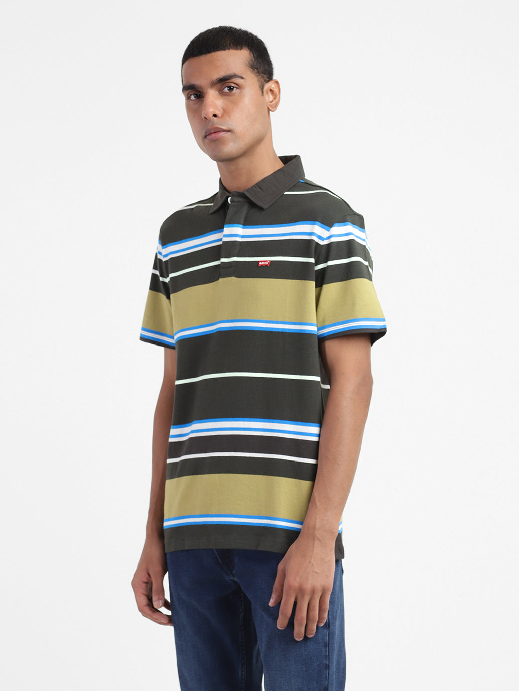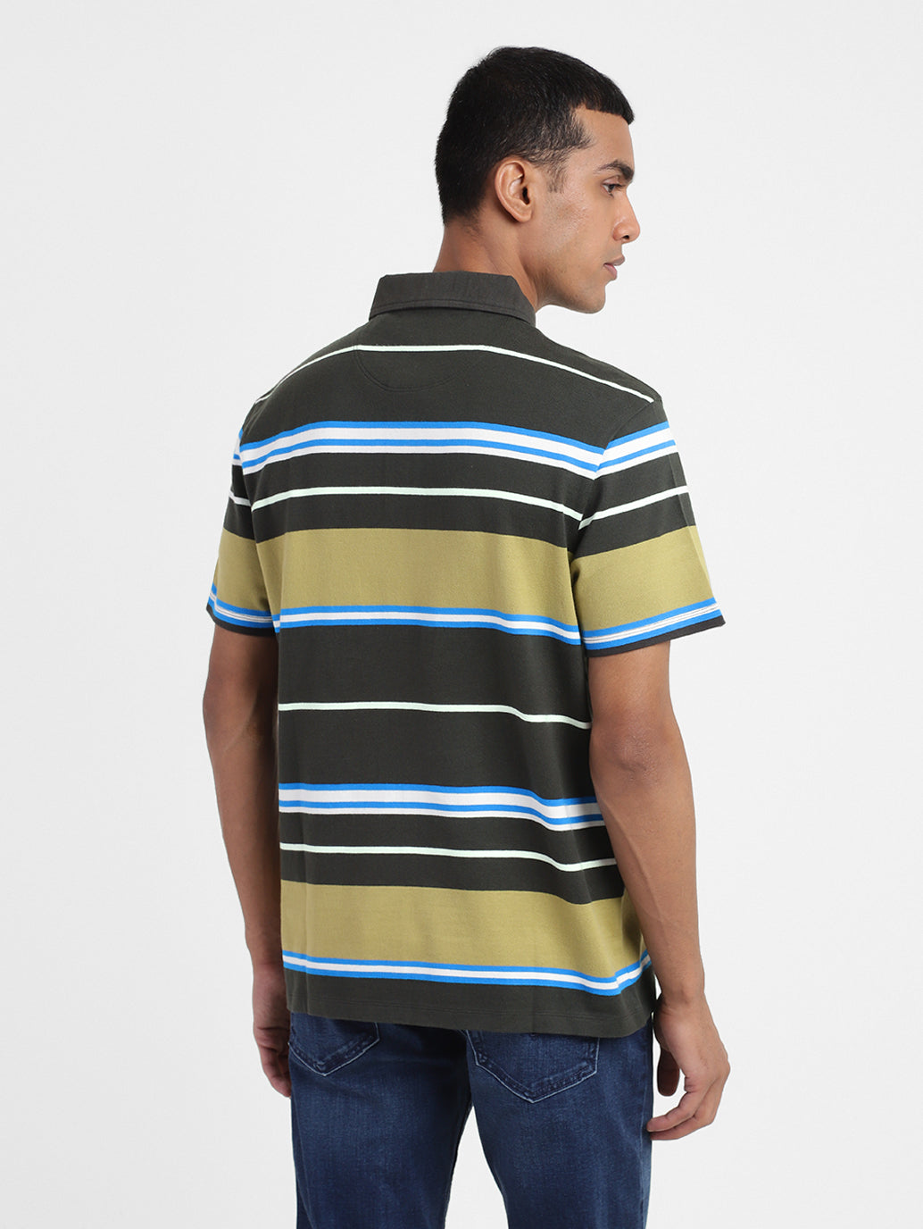 Ideal for a semi-formal look, the trendy Levi's Men's Polo Collar Polo T-Shirt makes for a worthy addition to your collection. Featuring a stripes pattern, this black polo T-shirt is sure to fetch you lots of compliments. Featuring short sleeves, this tee is made from cotton material in a regular fit.