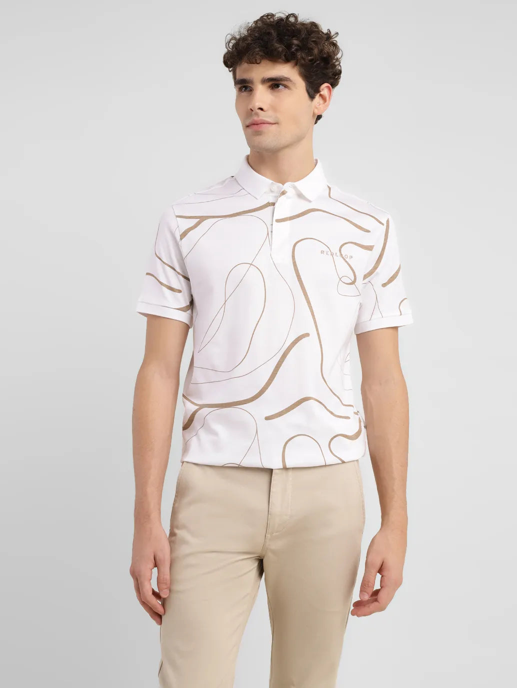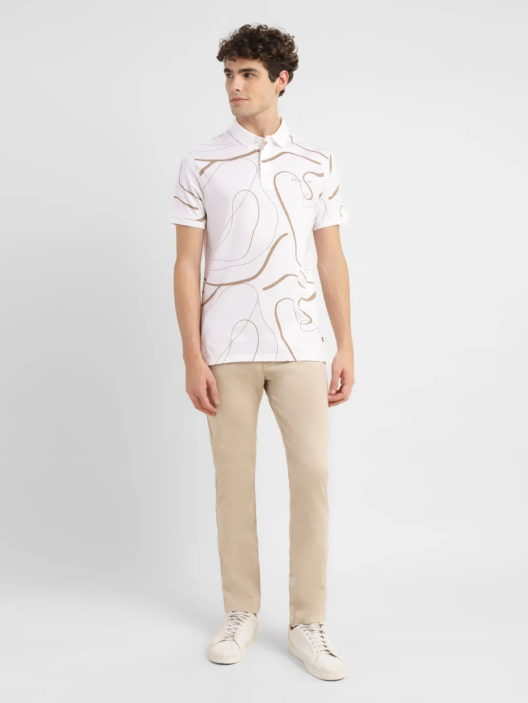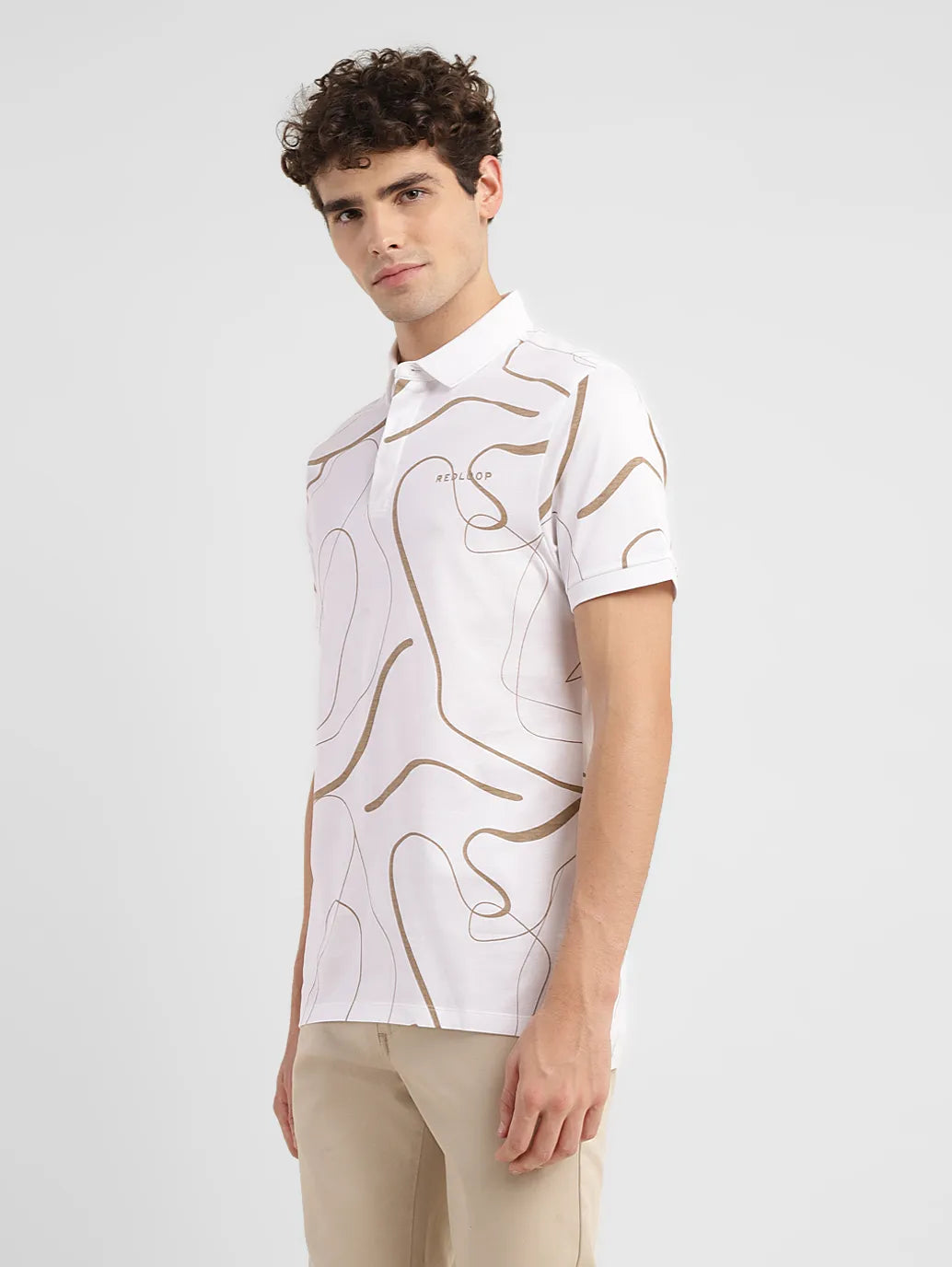 Simple yet stylish, this t-shirt by Levi's is ideal to achieve your casual go-to look. Whether you're going out with friends or planning a movie night, you can style this t-shirt with a classic leather jacket to look uber-stylish.1. Good quality pure cotton ensures comfort2. Features a polo collar and short sleeves3. Designed for a slim fit and has an abstract pattern4. Redloop collection