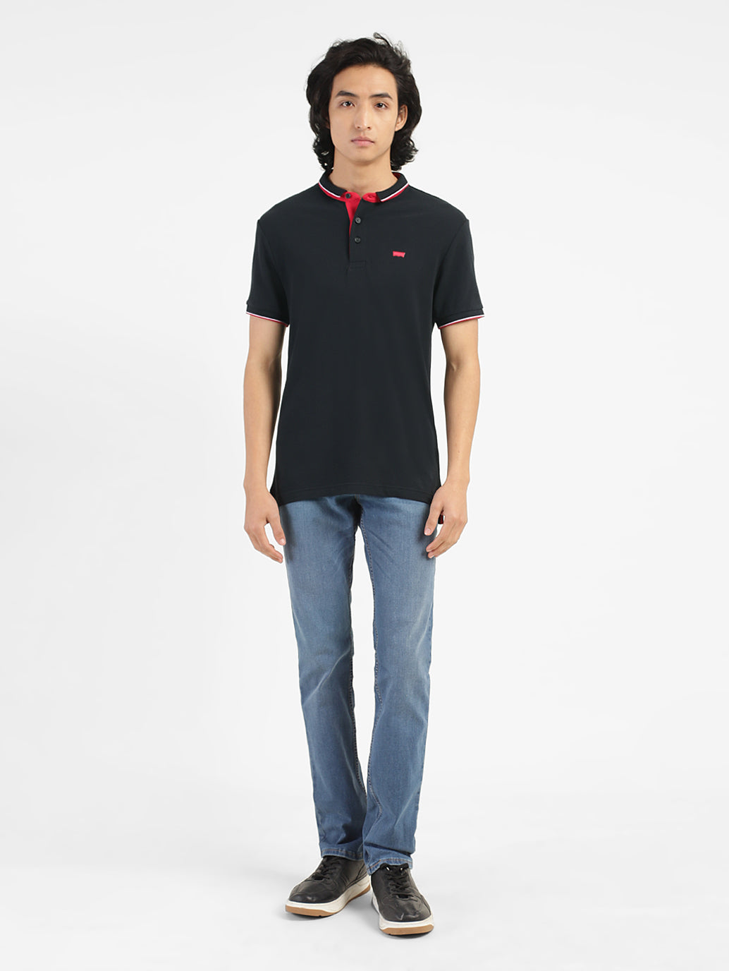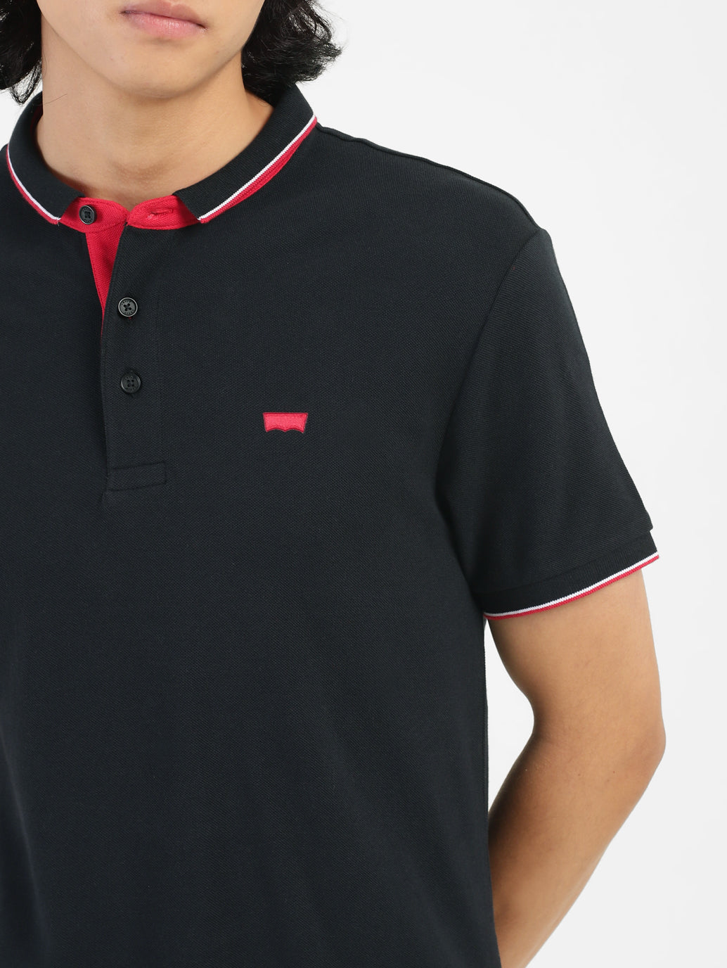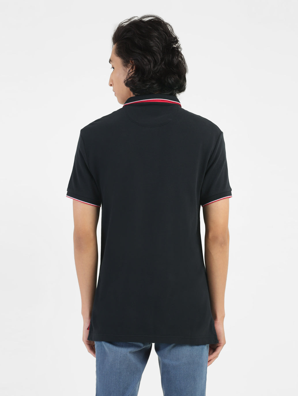 Flaunt your effortlessly casual style by donning the Men's Black Polo Collar T-Shirt. This short sleeves tee is made from soft yet durable pure cotton material and lends a regular fit.
