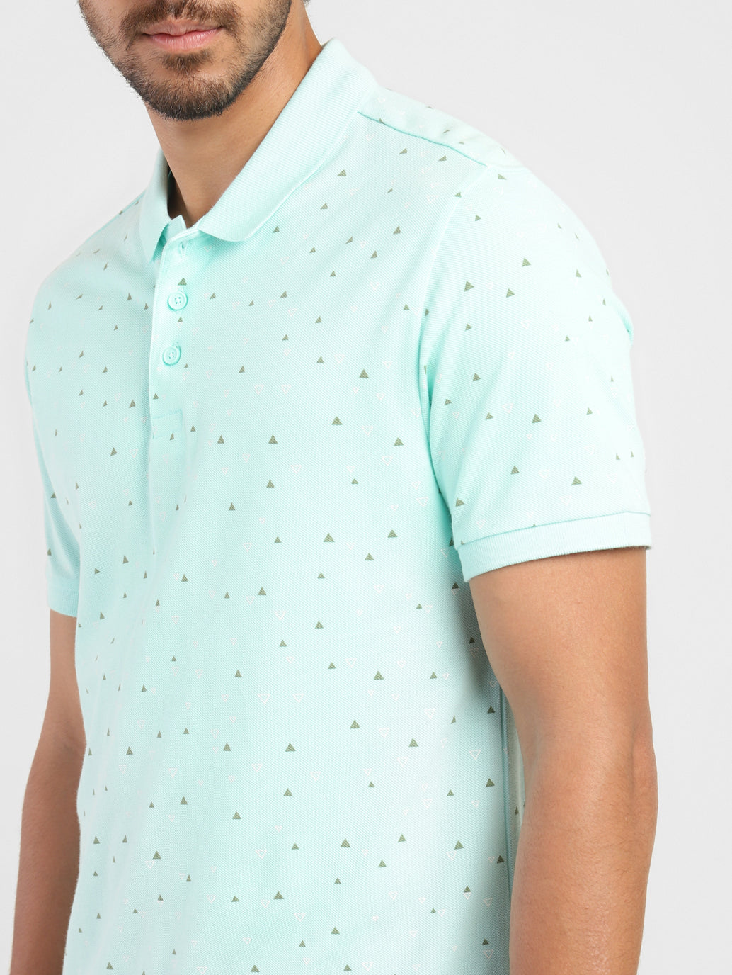 Look uber-cool and chic with this regular fit polo tee. With a printed pattern, this T-shirt gives you a flattering look. Tailored from soft cotton, this short sleeves T-shirt feels gentle on your skin.