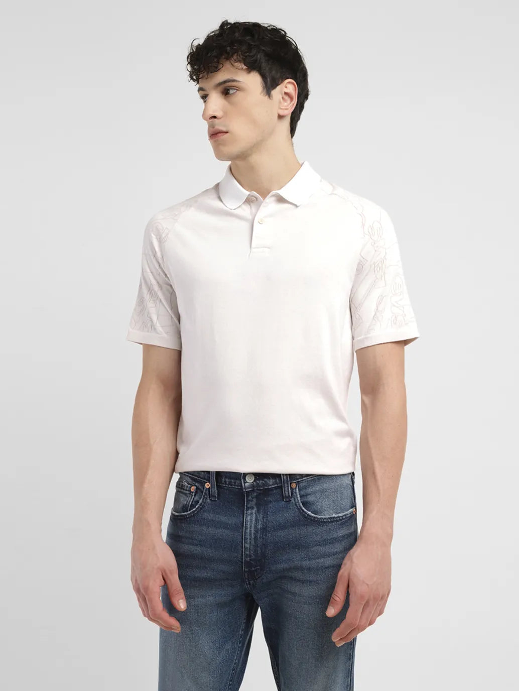 Switch up your everyday wardrobe with this trending t-shirt from Levi's. Ideal to wear for all seasons, this versatile t-shirt features a polo collar and short sleeves. Style it with a pair of straight-fit denims and white shoes to complete your outfit.1. Made from premium quality cotton2. Slim fit in the shade beige3. Comfortable essential with a brand logo pattern