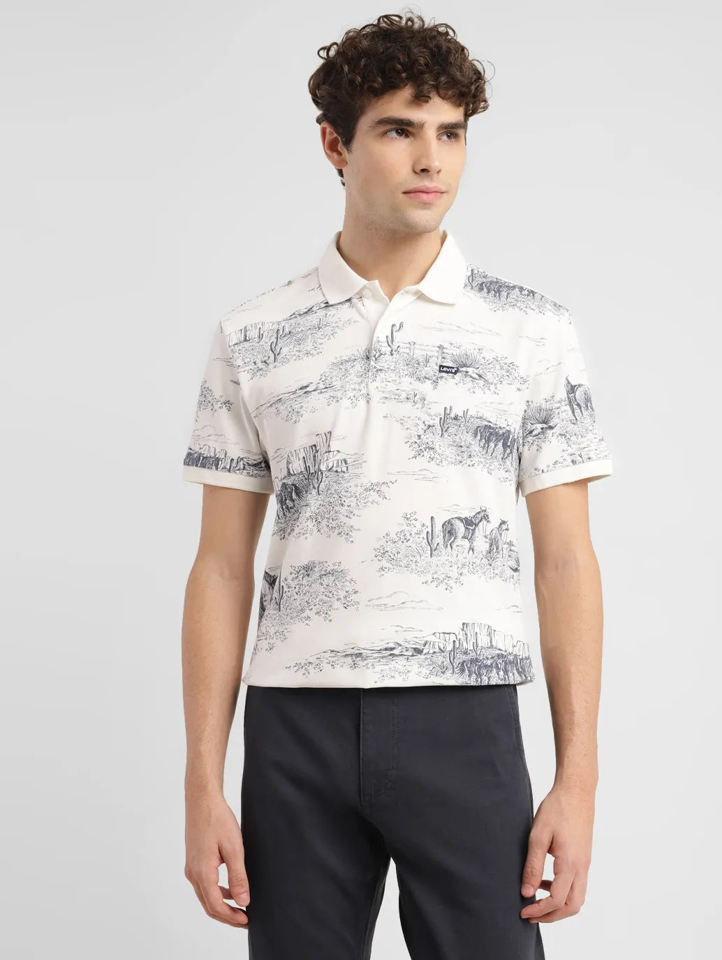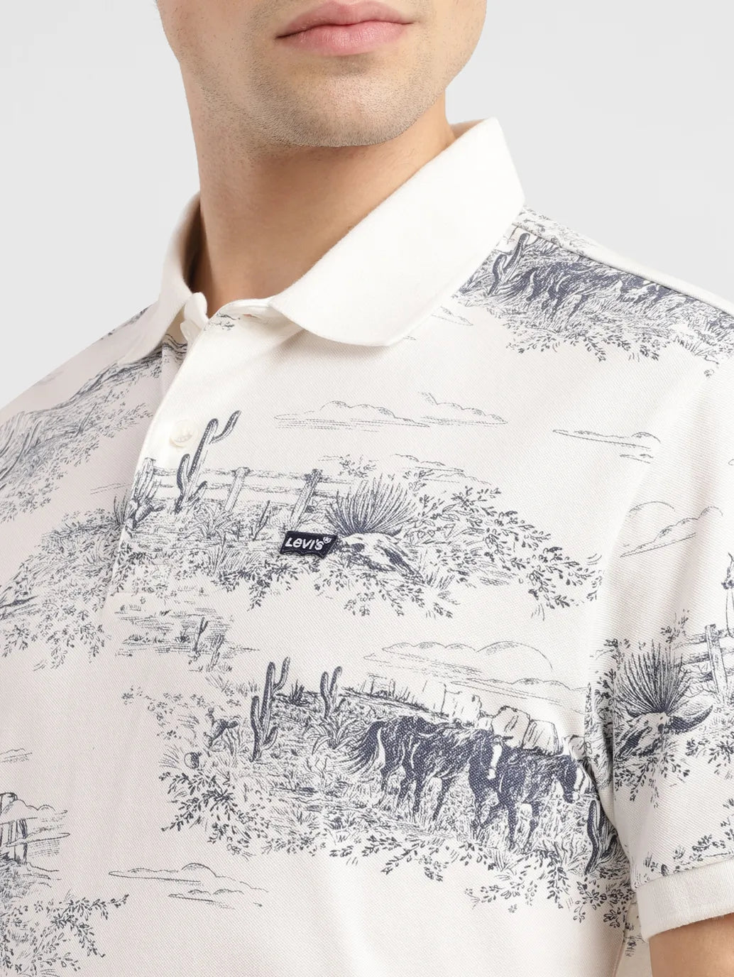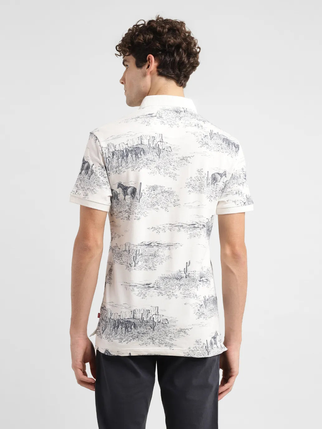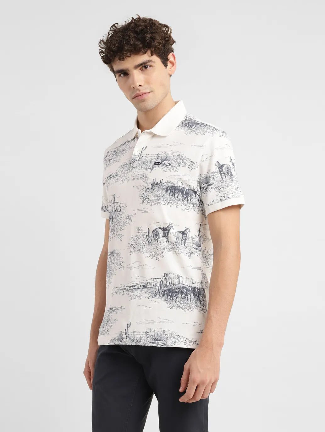 1. Made from premium quality cotton 2. Standard polo collar and short sleeves 3. Features a conversational pattern in the color white