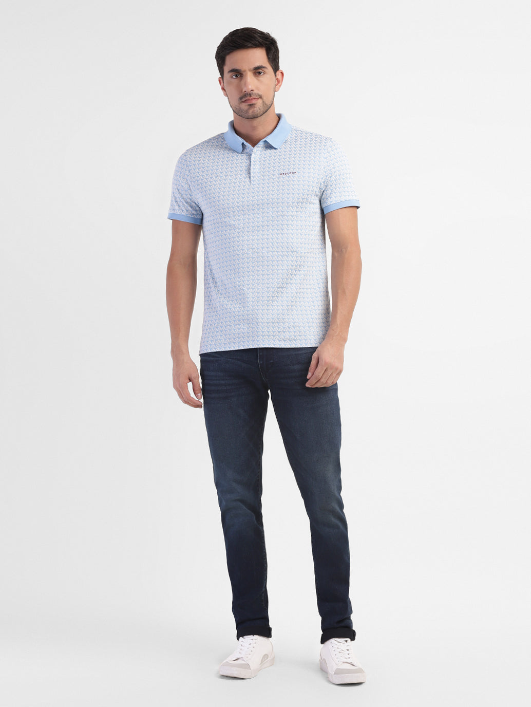 Blending style with comfort, check out this off-duty essential by Levi's. This t-shirt features a geometric pattern and comes in the color blue. Team it with a pair of denim shorts and espadrilles for a weekend get-away look. 1. Classic polo collar style and short sleeves 2. Made from lightweight and comfortable cotton 3. Slim fit and easy to wear'Live in Levi's'asserts with confidence and pride that Levi's clothes are indeed for everybody who's not just anybody.