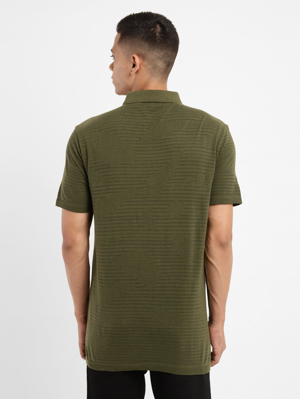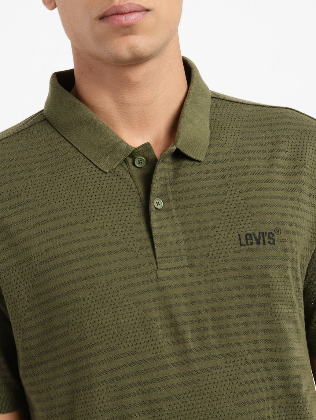 Blending style with comfort, check out this off-duty essential by Levi's. This t-shirt features a self pattern and comes in the color cypress green. Team it with a pair of denim shorts and espadrilles for a weekend get-away look.