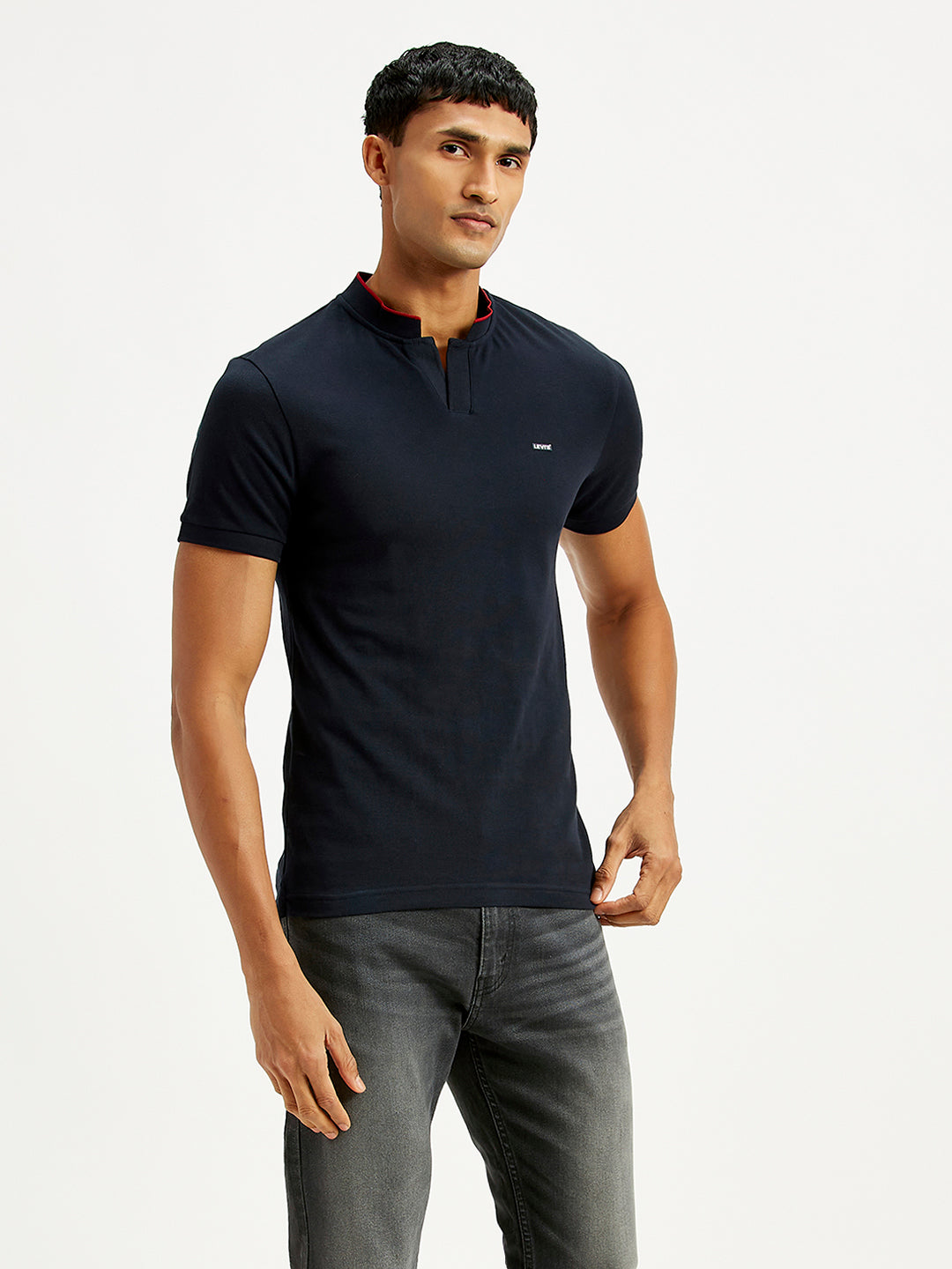 Switch up your everyday wardrobe with this trending t-shirt from Levi's. Ideal to wear for all seasons, this versatile t-shirt features a mandarin collar and half sleeves. Comfortable essential with a solid pattern.