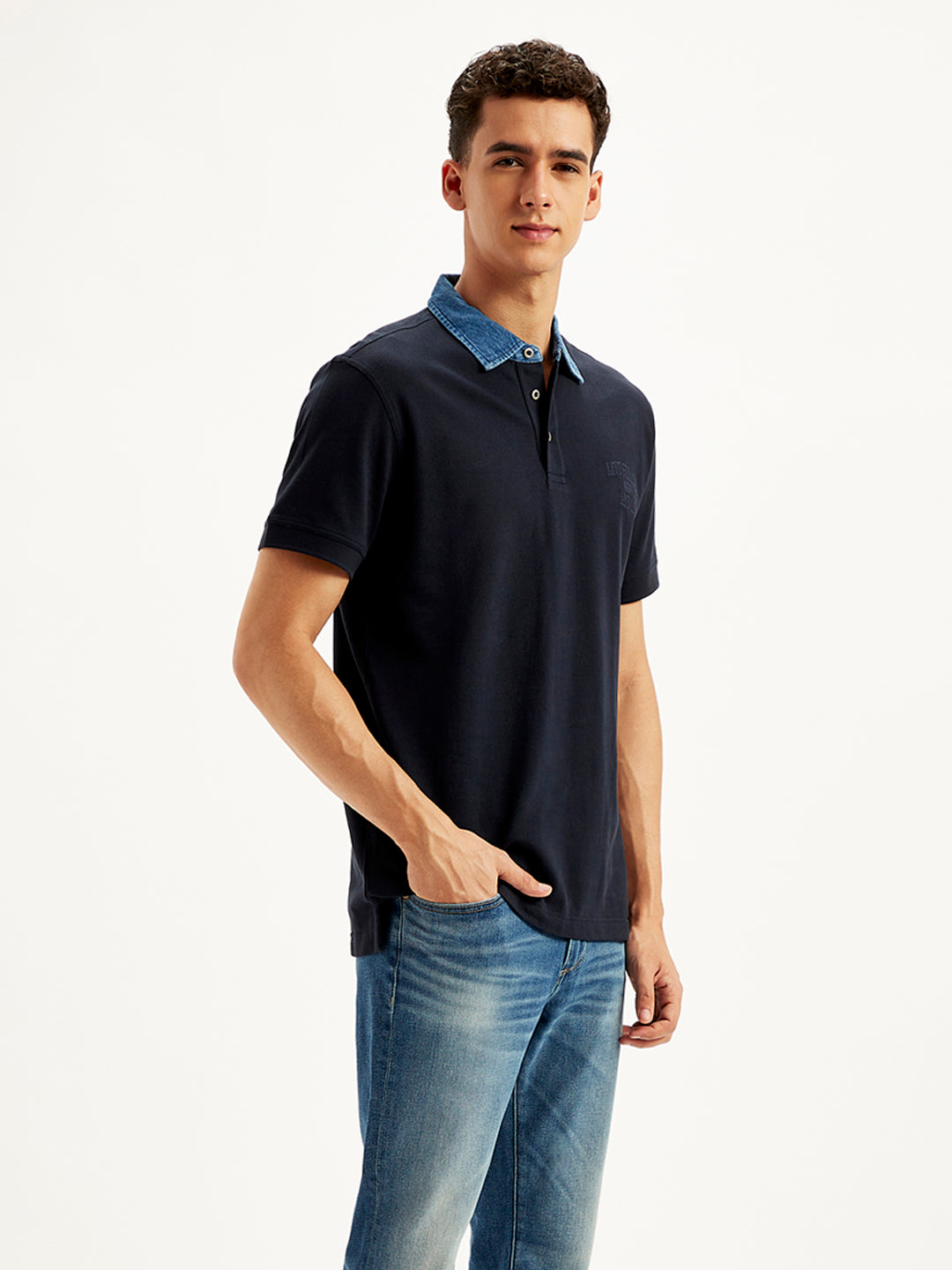 Made from good quality cotton, this easygoing Levis black t-shirt is perfect to add to your casual collection. Features a polo collar and a solid pattern.