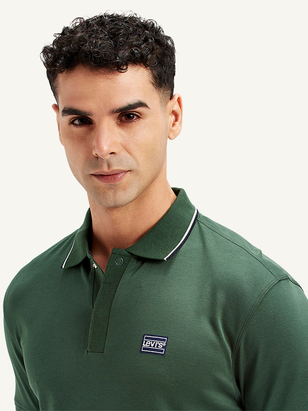 Made from good quality cotton, this easygoing Levis green t-shirt is perfect to add to your casual collection. Features a polo collar and a solid pattern.