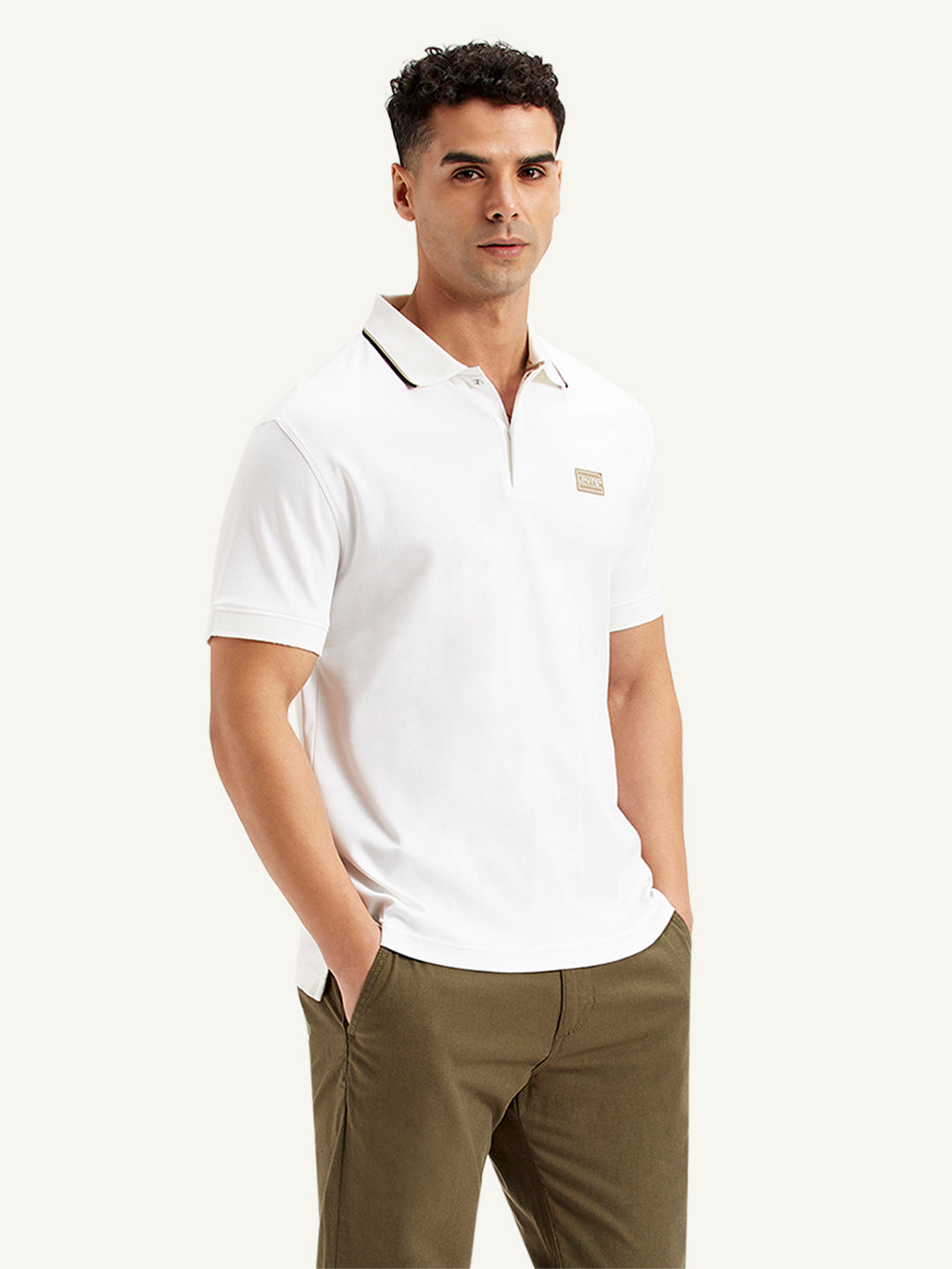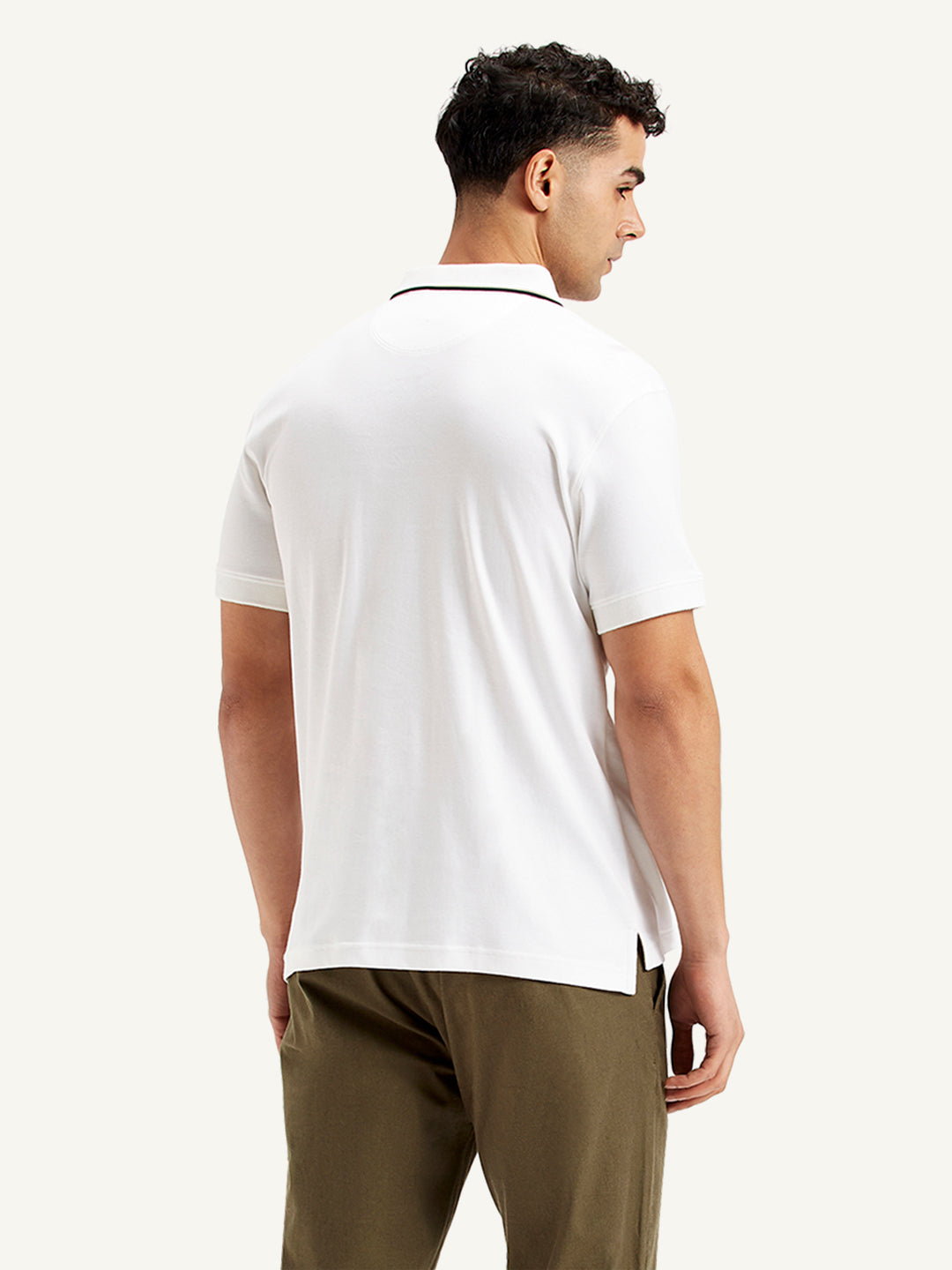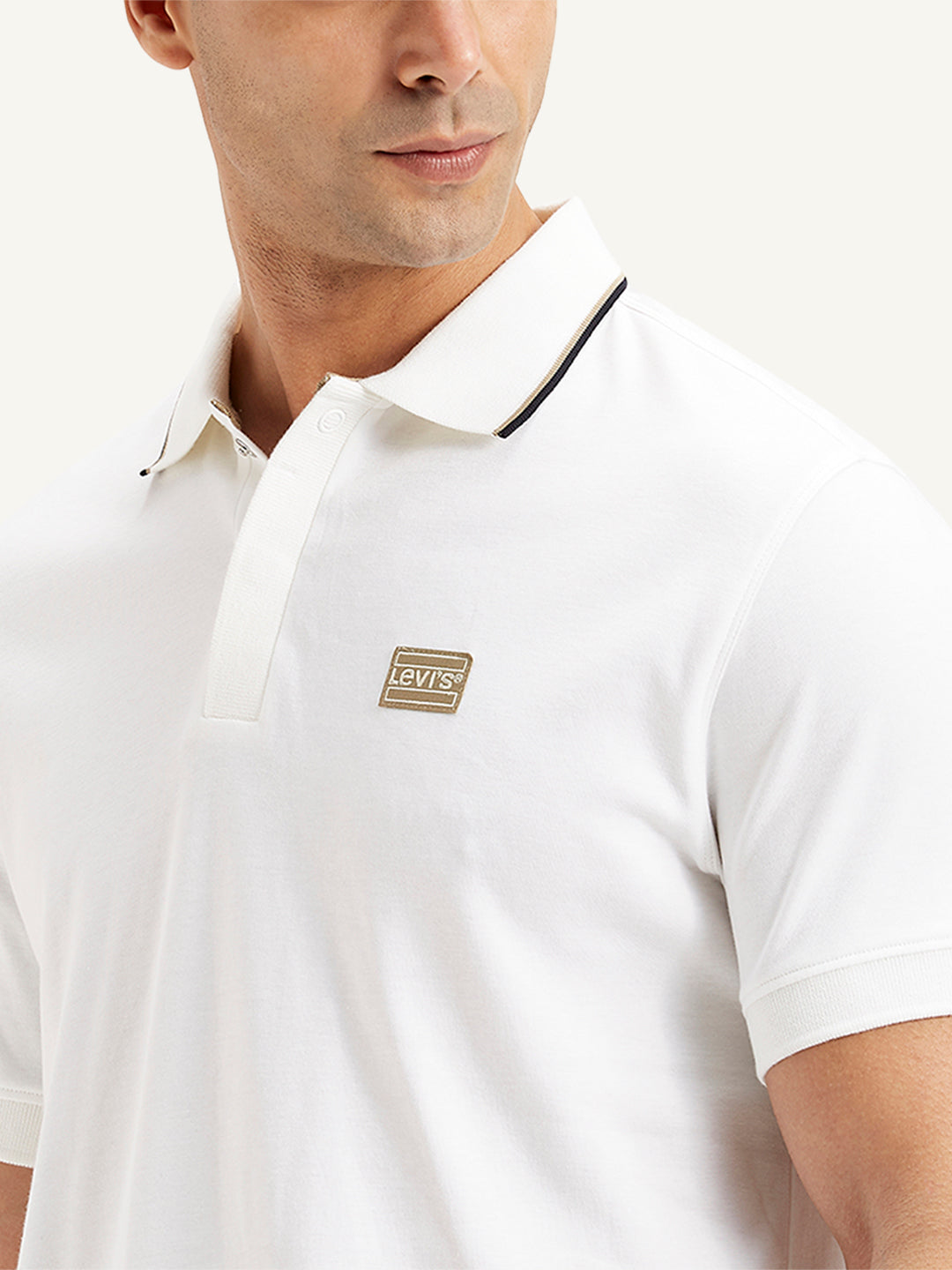 Made from good quality cotton, this easygoing Levis white t-shirt is perfect to add to your casual collection. Features a polo collar and a solid pattern.