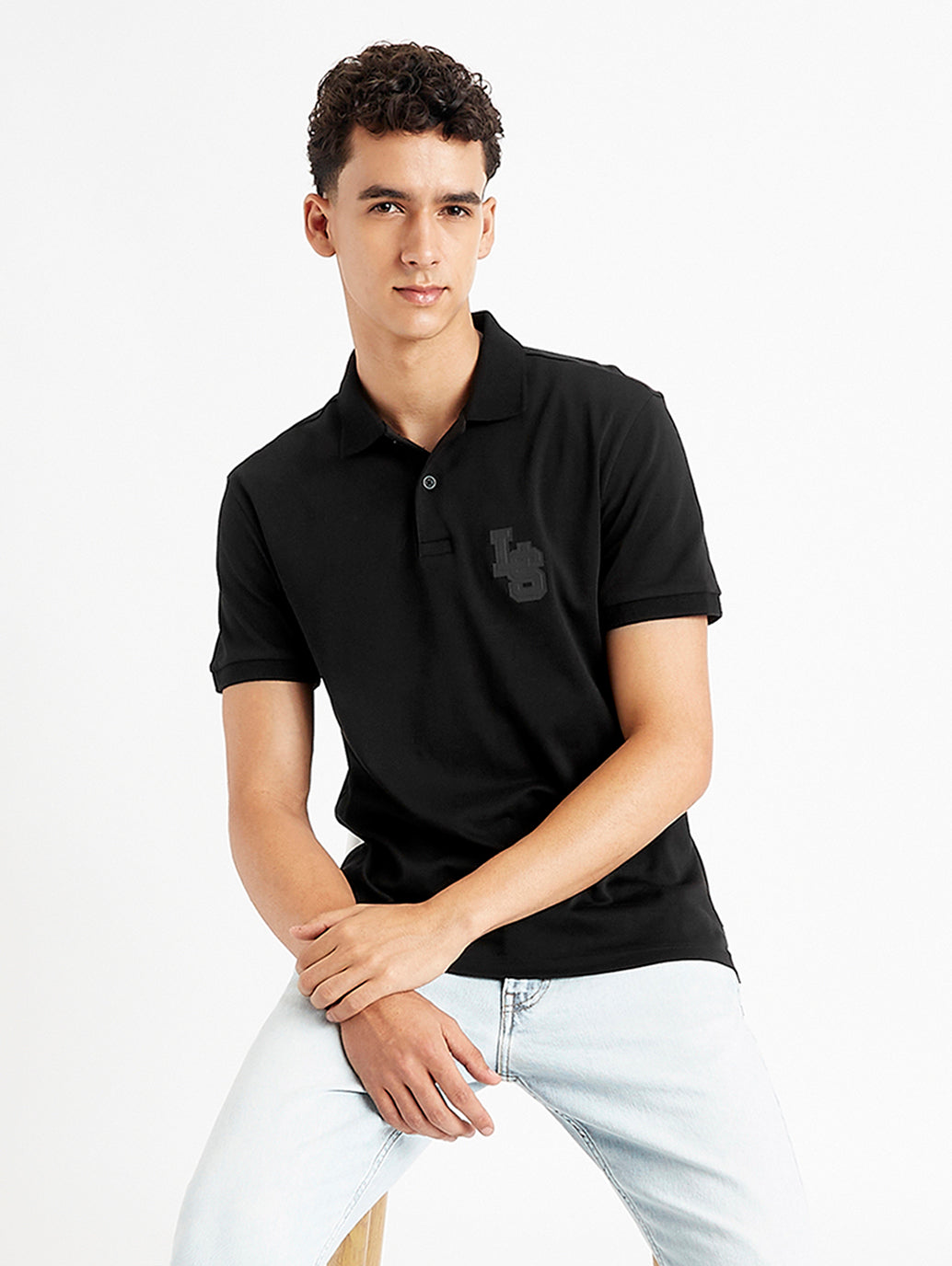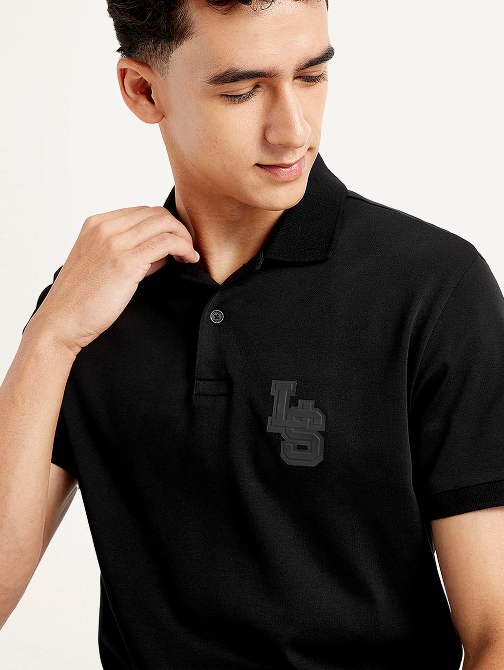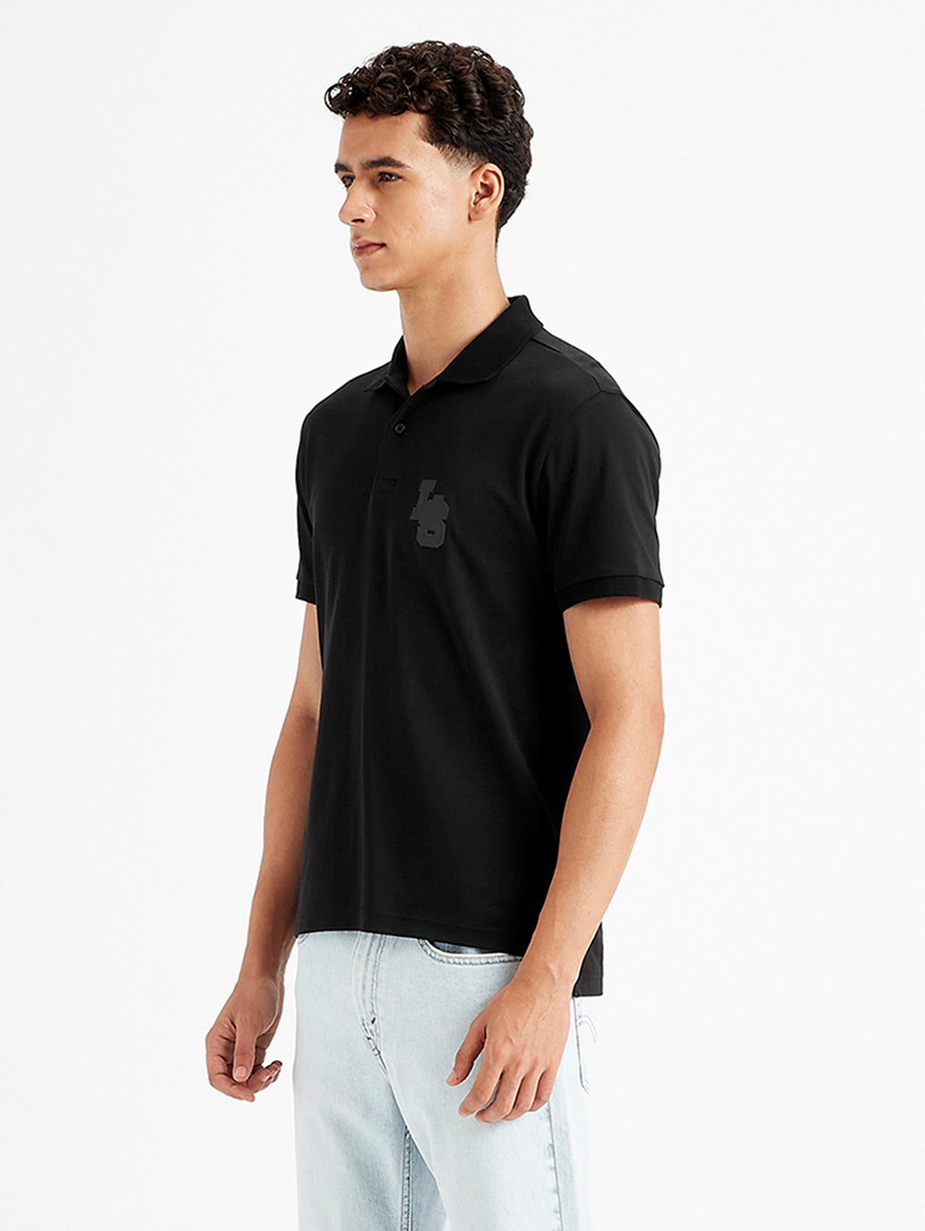 Made from good quality cotton, this easygoing Levis black t-shirt is perfect to add to your casual collection. Features a polo collar and a solid pattern.