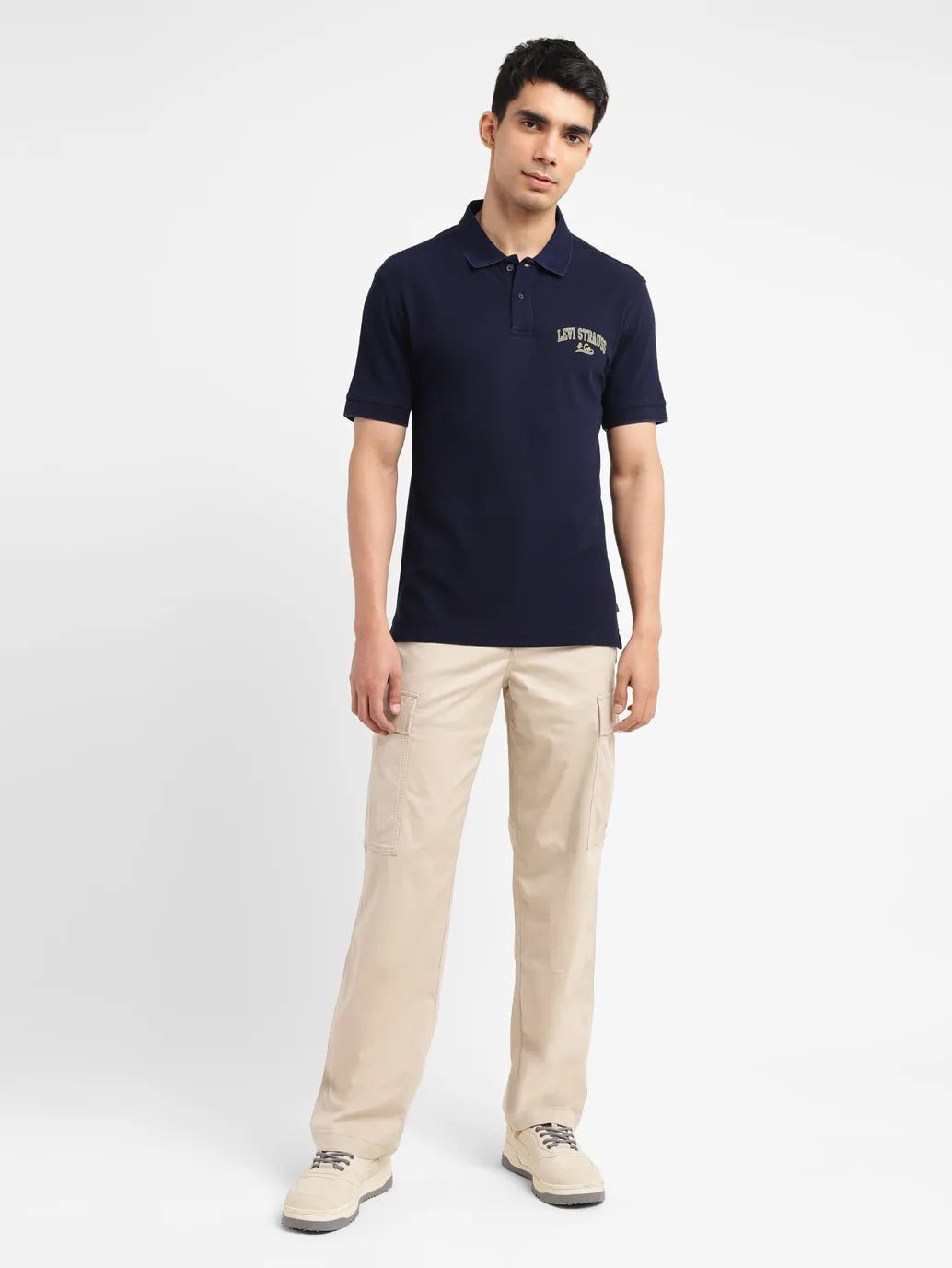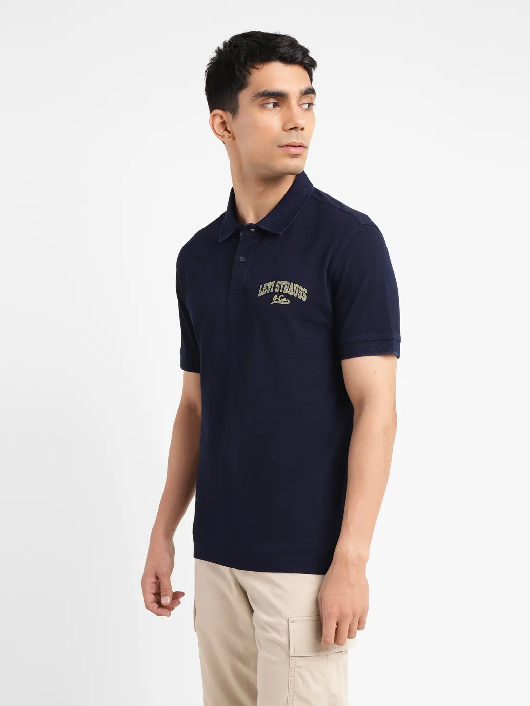 Levi's presents to you this timeless piece for your casual collection. This t-shirt is a staple to own. You can even style it up a notch and pull off an elevated look by teaming the t-shirt with black trousers, a biker jacket, and a pair of sleek loafers.1. High quality pure cotton ensures maximum comfort2. Features a polo collar and short sleeves3. Comes in a color blue with solid pattern