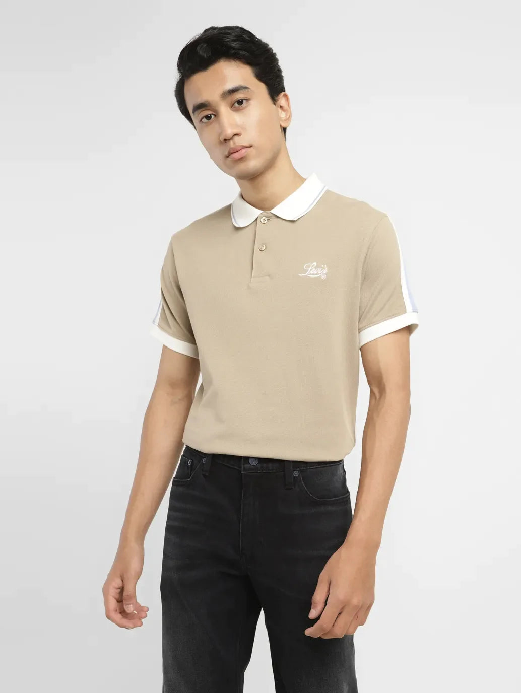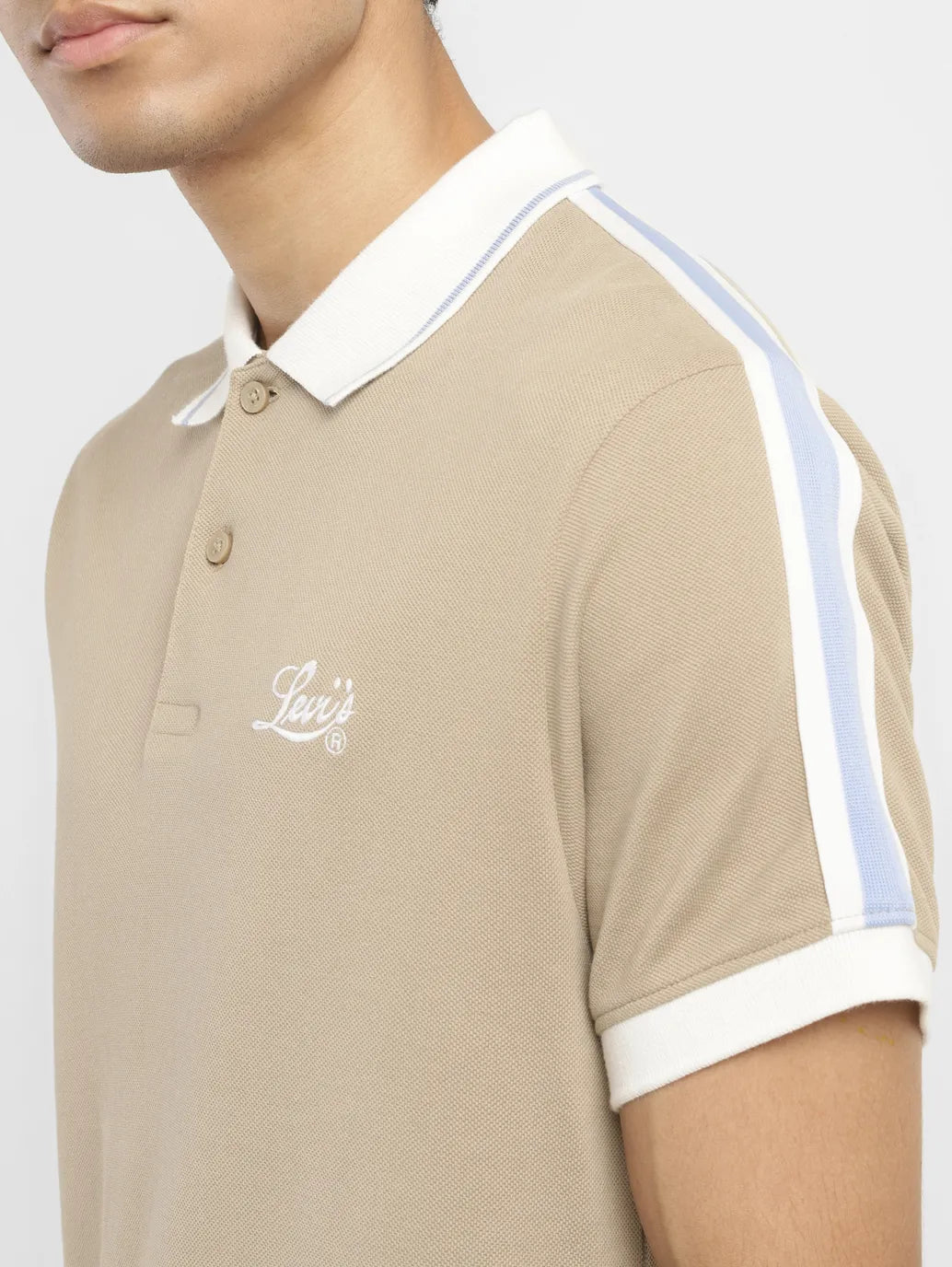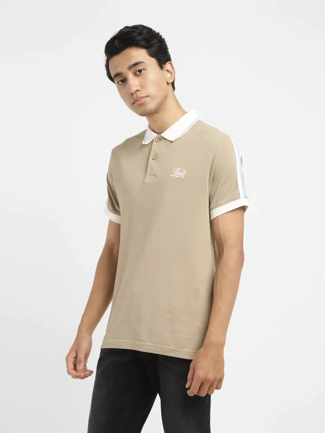 - Features a polo collar with contrast neckline, tape on shoulders and short sleeves