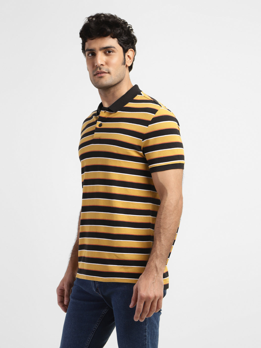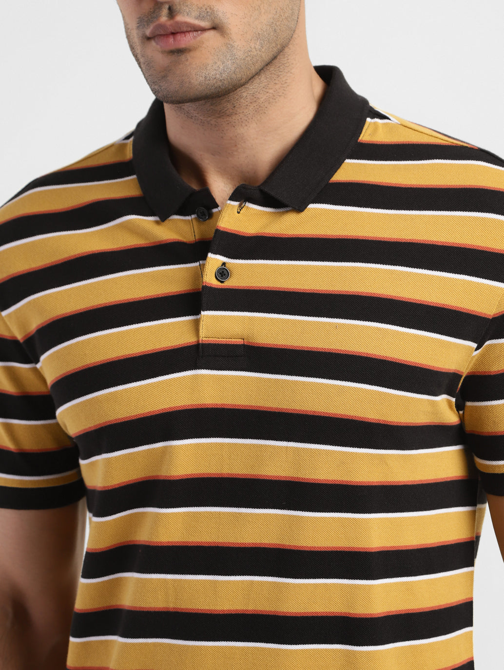 - Features a polo collar and short sleeves