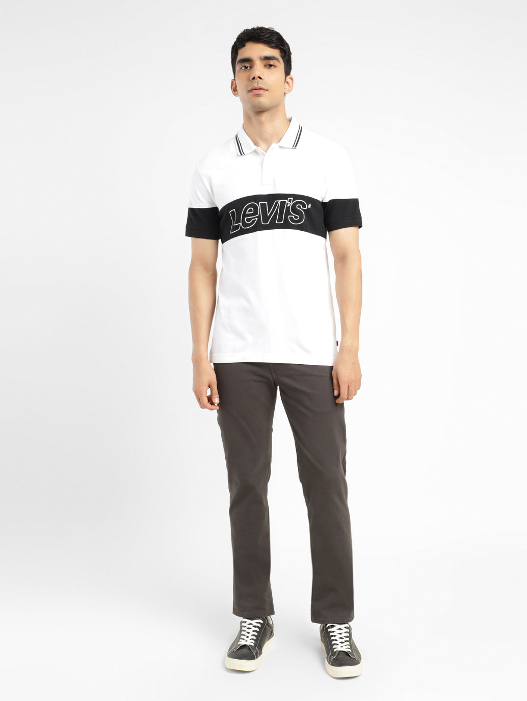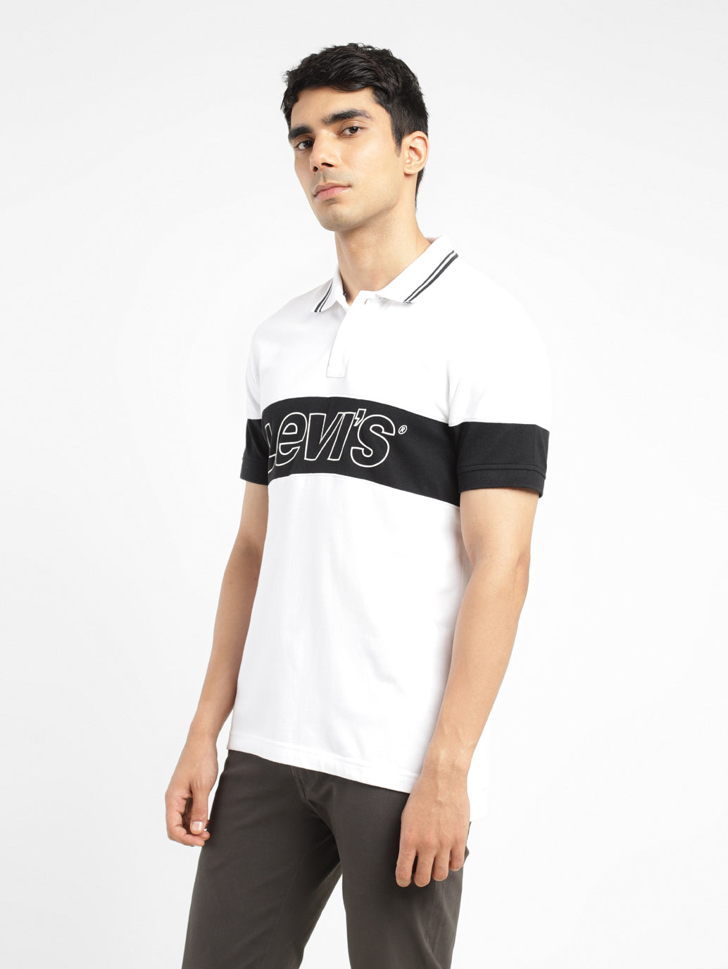 Switch up your everyday wardrobe with this trending t-shirt from Levi's. Ideal to wear for all seasons, this versatile t-shirt features a polo collar and short sleeves. Style it with a pair of straight-fit denims and white shoes to complete your outfit.