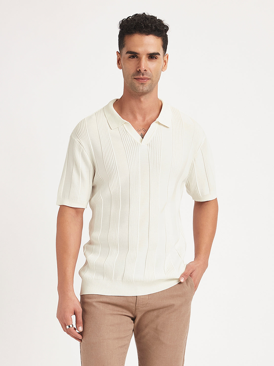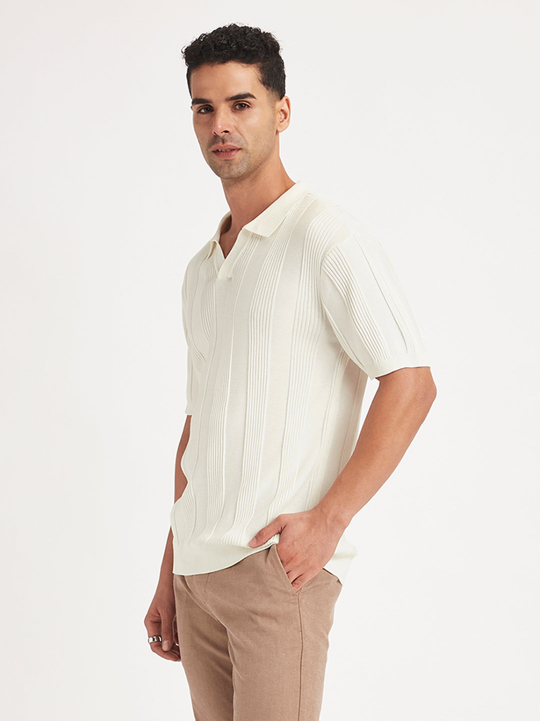 Switch up your everyday wardrobe with this trending t-shirt from Levi's. Ideal to wear for all seasons, this versatile t-shirt features a polo collar and half sleeves. Comfortable essential with a striped pattern.